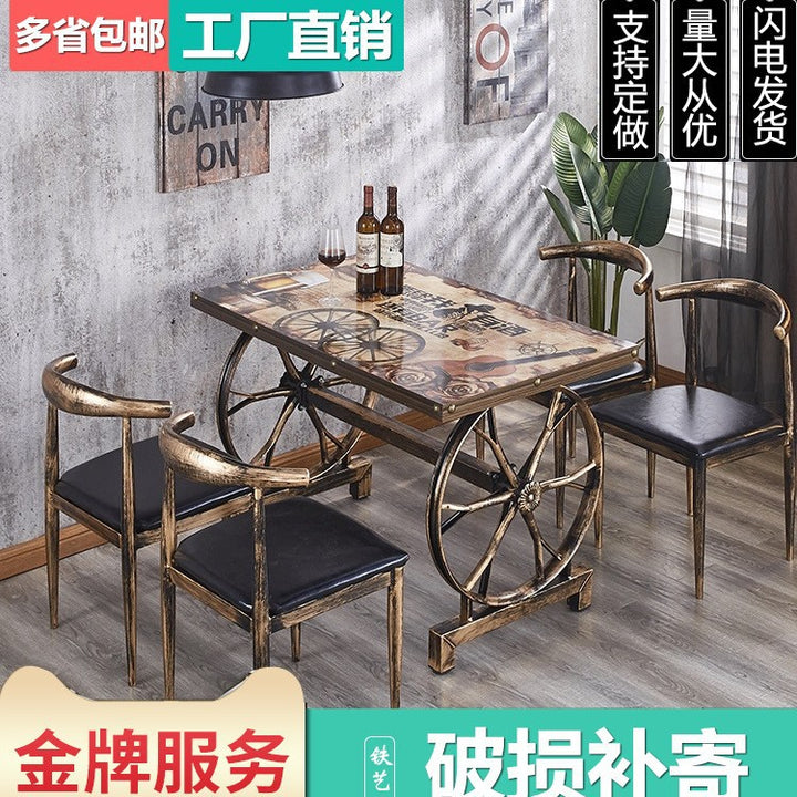 Retro industrial style breakfast noodle restaurant fast food table commercial catering barbec...