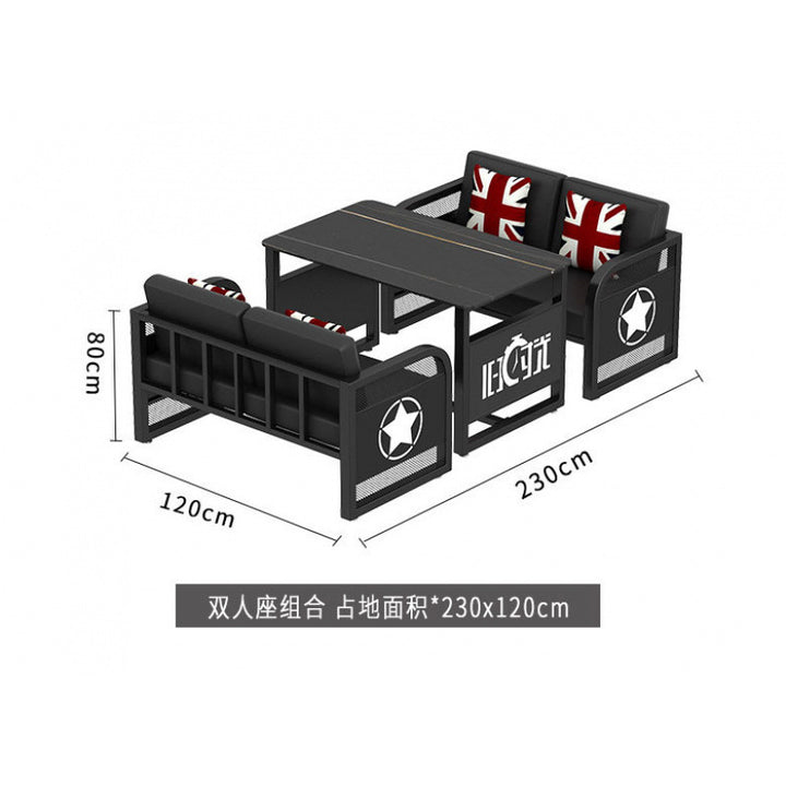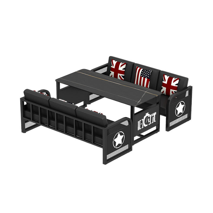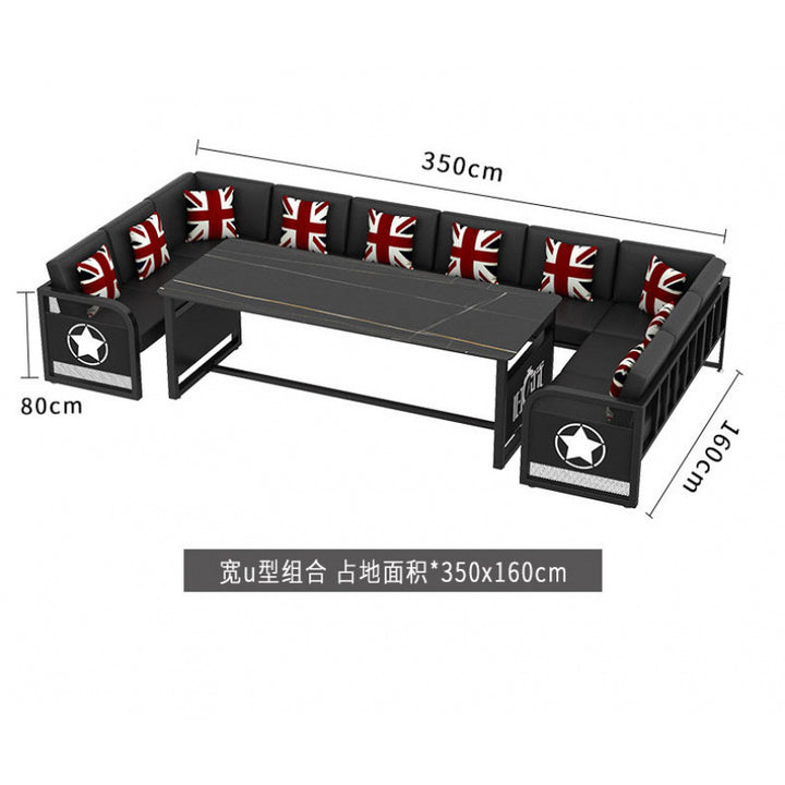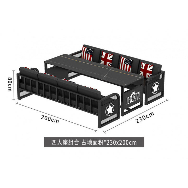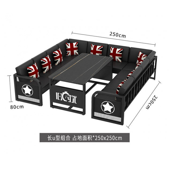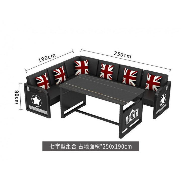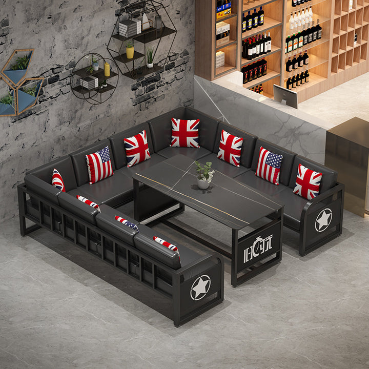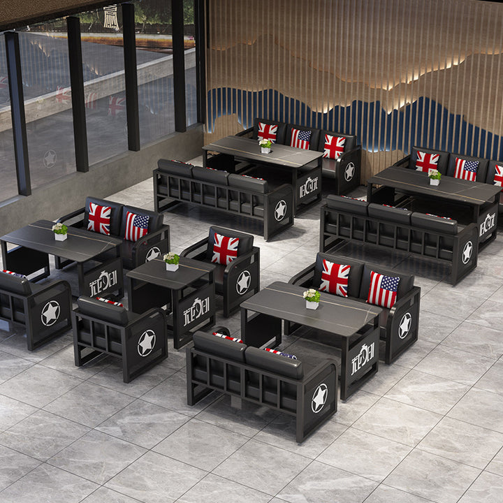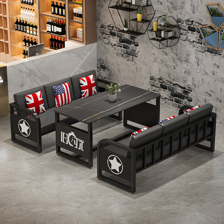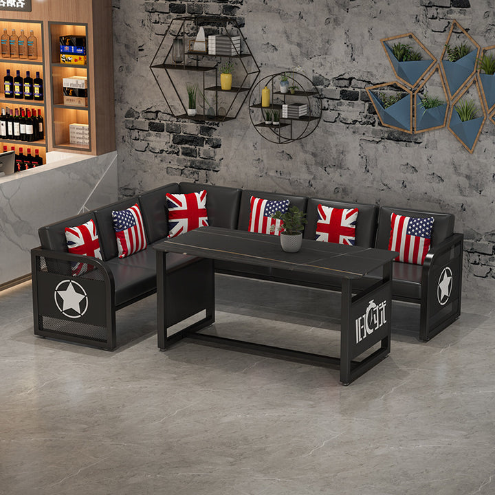 Retro industrial wind clear bar music dining bar booth sofa, bar pub black wrought iron rock slab table and chair combination