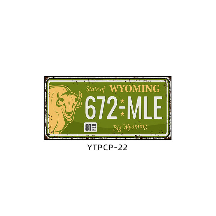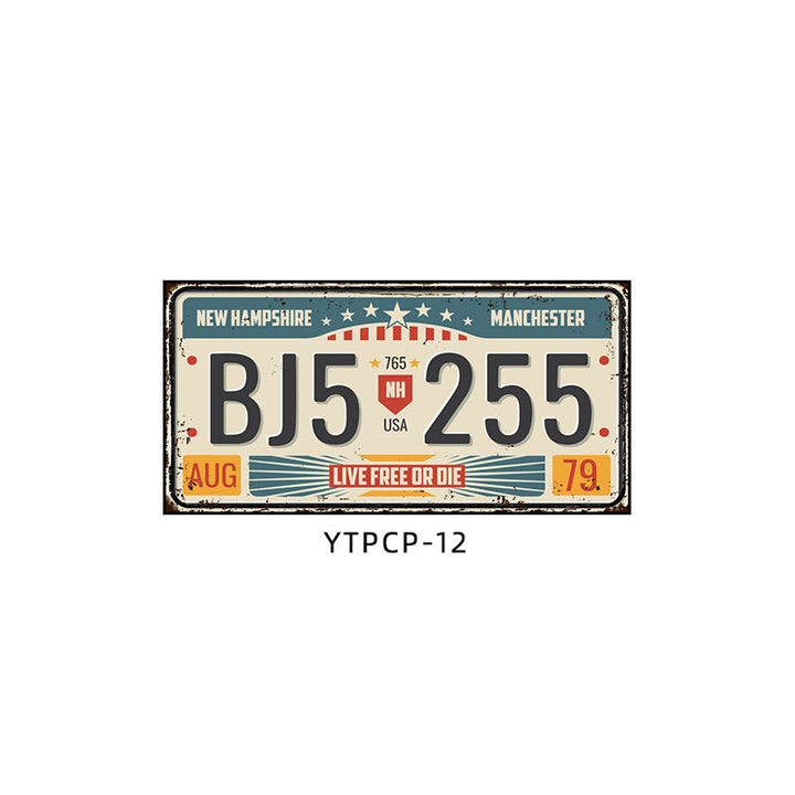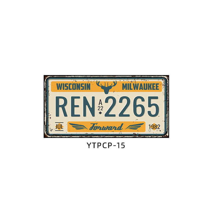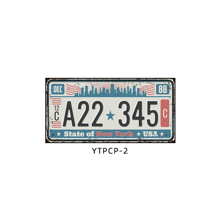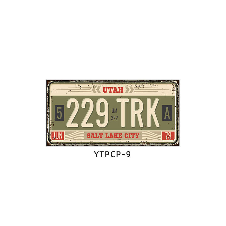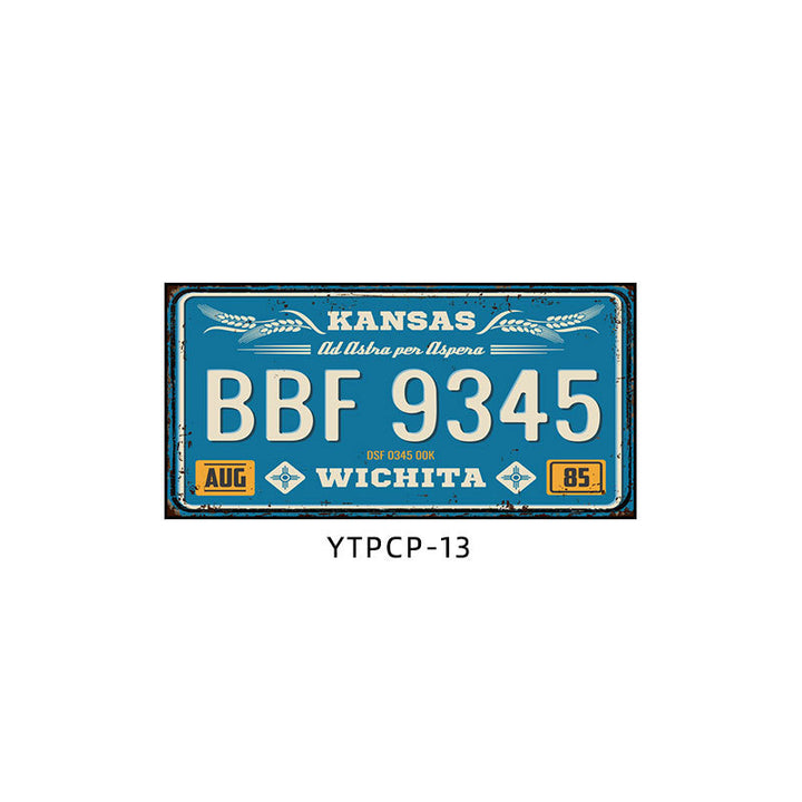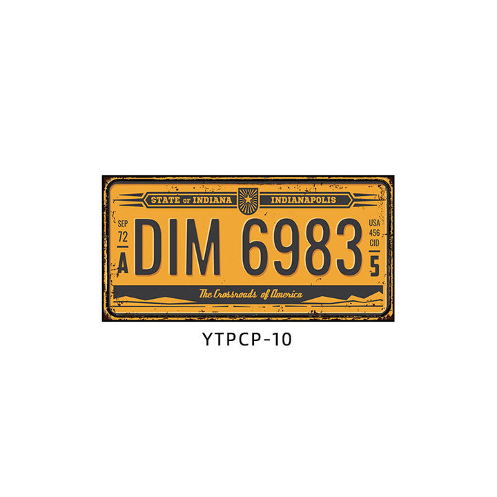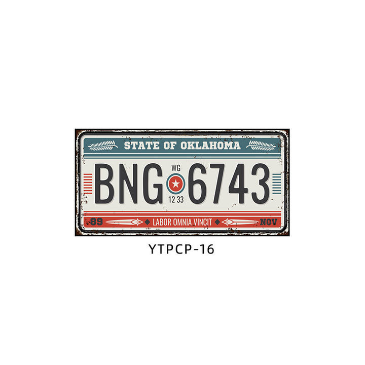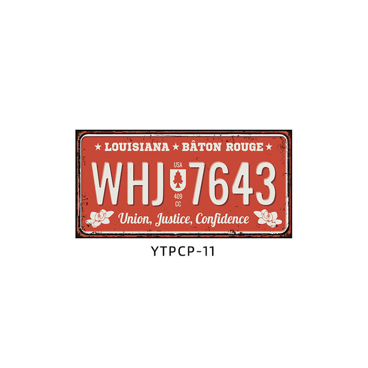 Retro license plate decorative painting Industrial style nostalgic restaurant bar Iron cover ugly wall painting Auto repair shop mural