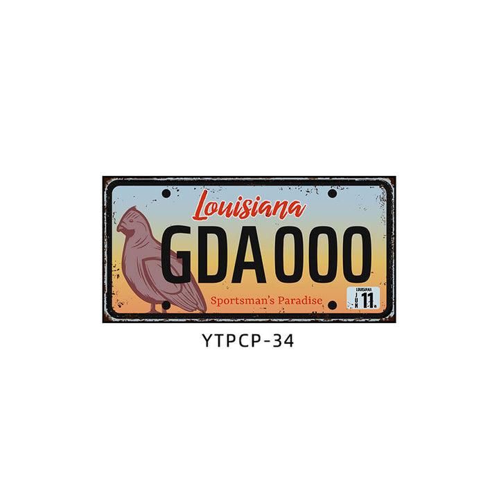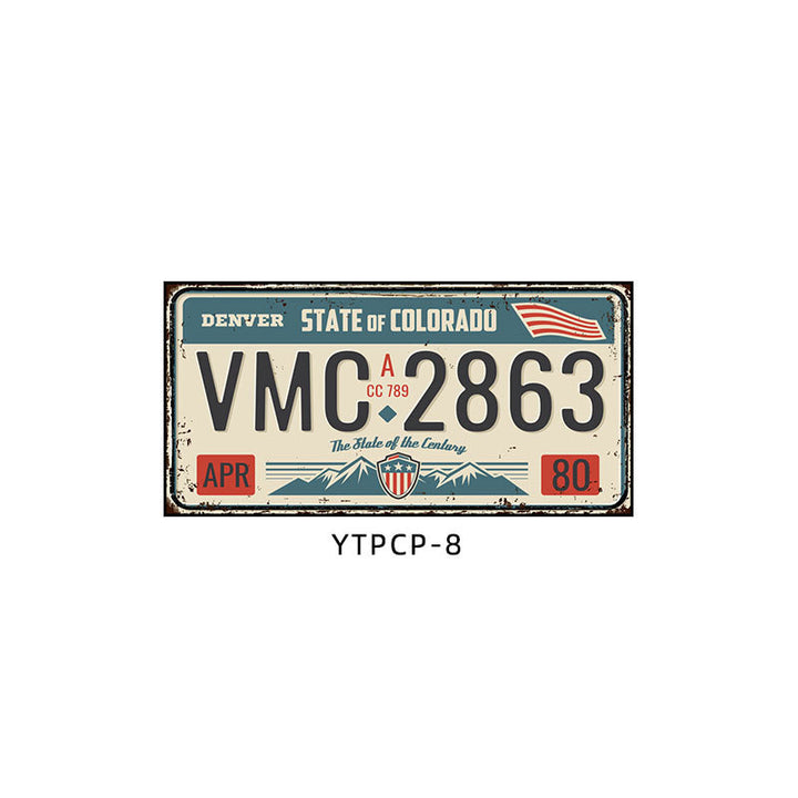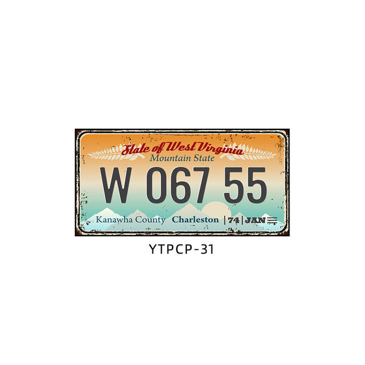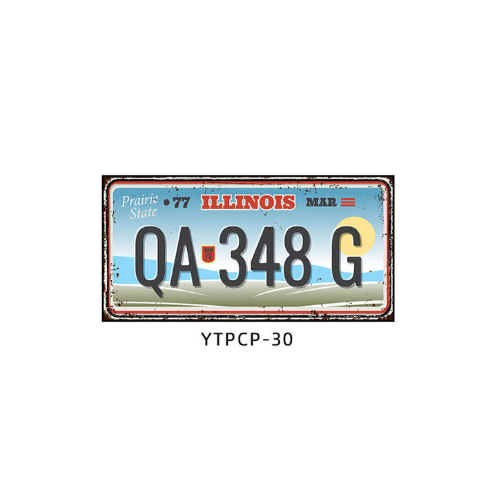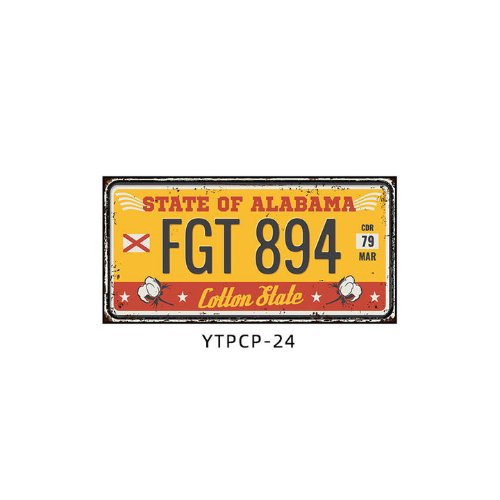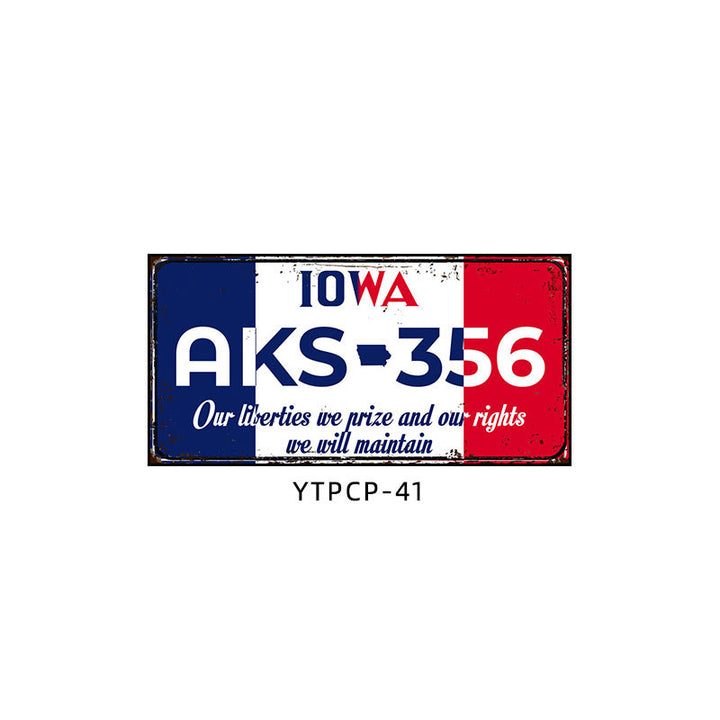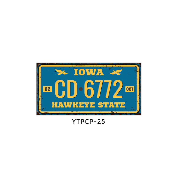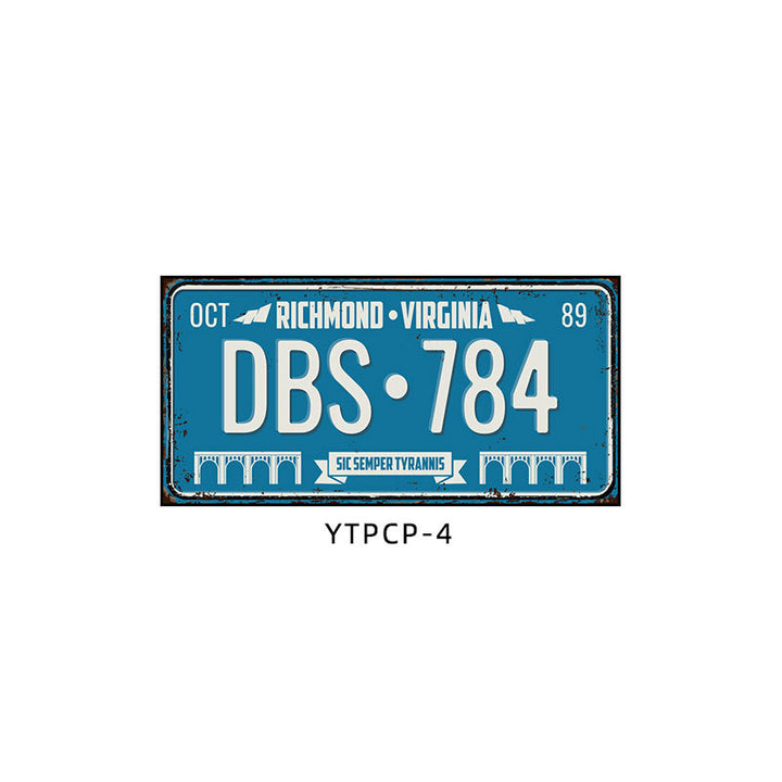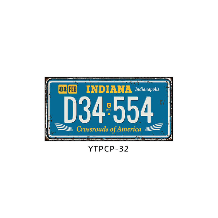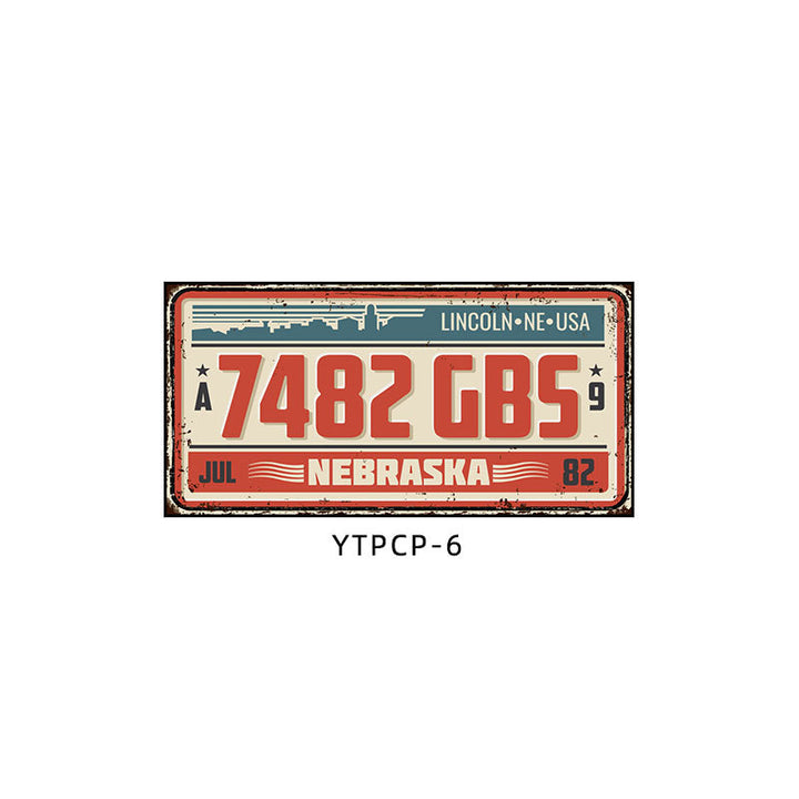 Retro license plate decorative painting Industrial style nostalgic restaurant bar Iron cover ugly wall painting Auto repair shop mural