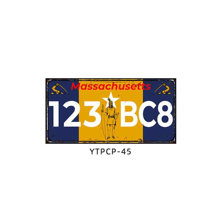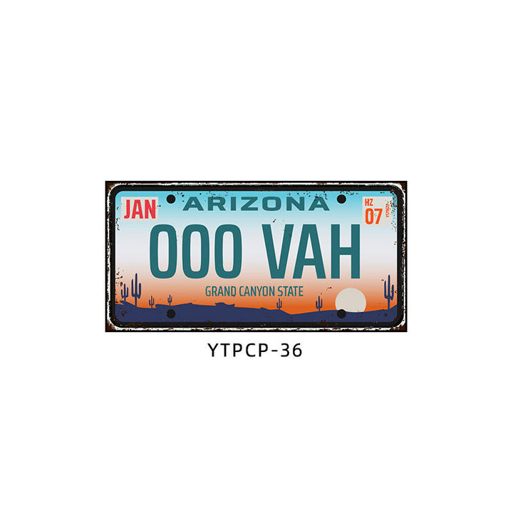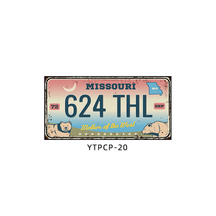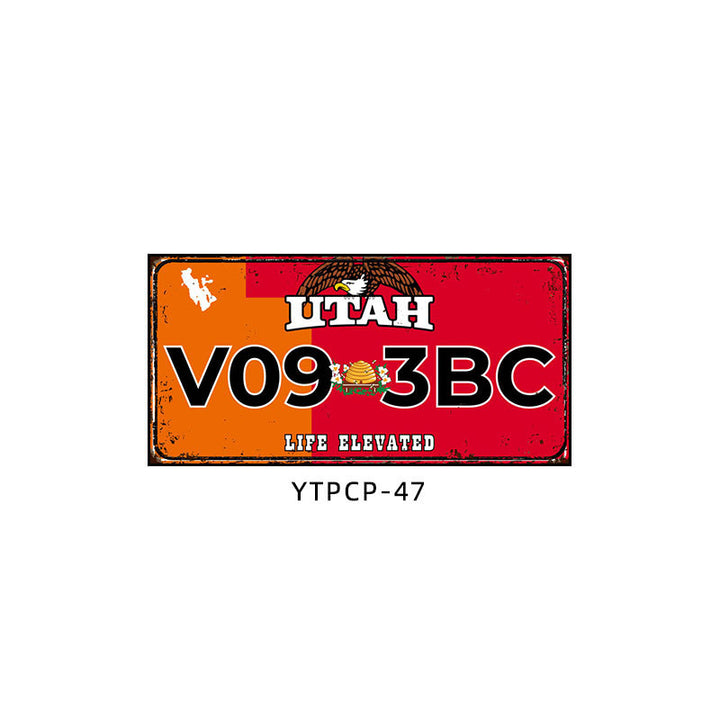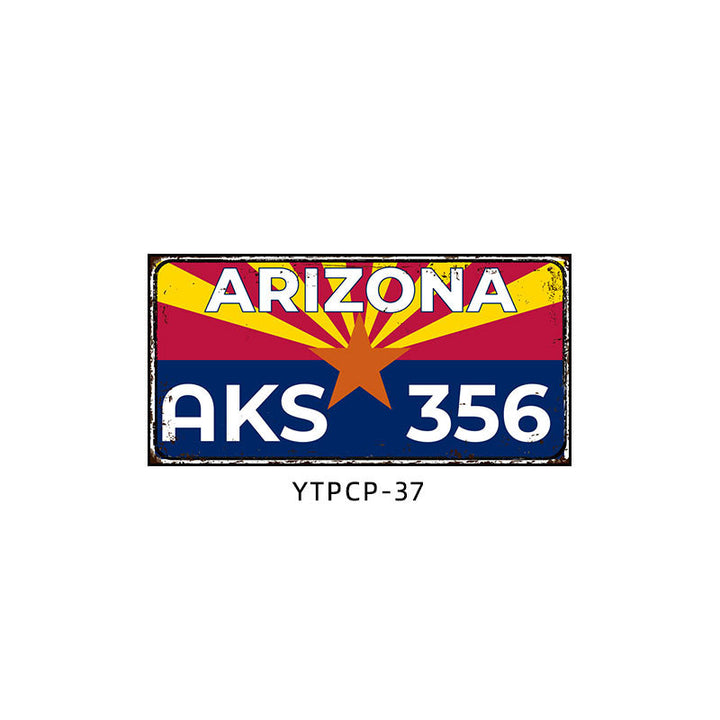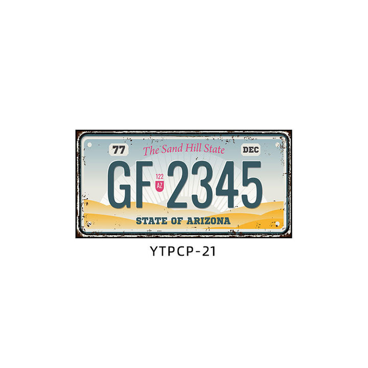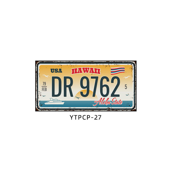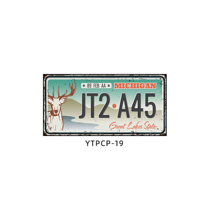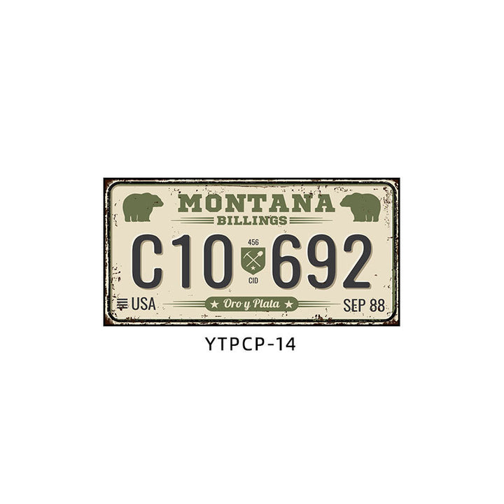 Retro license plate decorative painting Industrial style nostalgic restaurant bar Iron cover ugly wall painting Auto repair shop mural