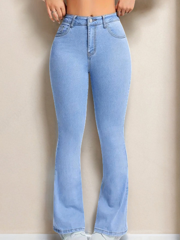 retro micro-pull jeans women's European and American high-waisted legs long slim-fitting floor-mopping trousers horseshoe pants