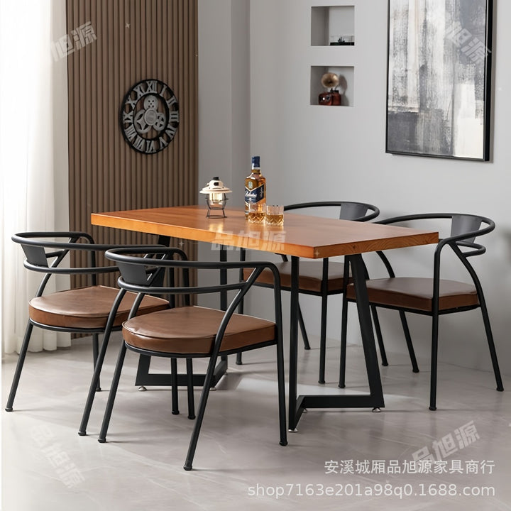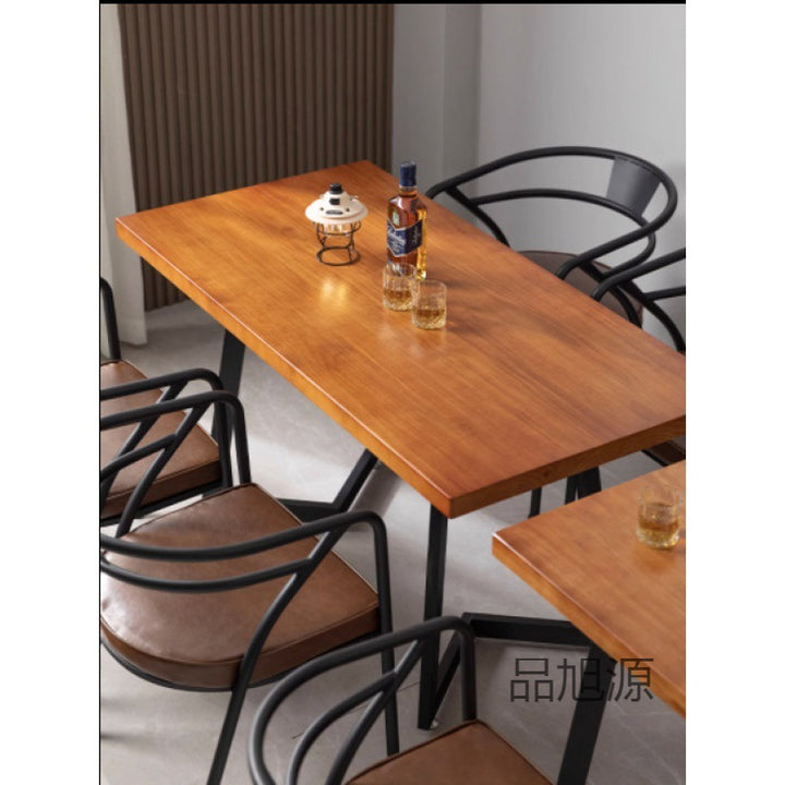 Retro music dining bar Industrial style Commercial bar Coffee hot pot restaurant Casual western restaurant Wrought iron solid wood dining table and...