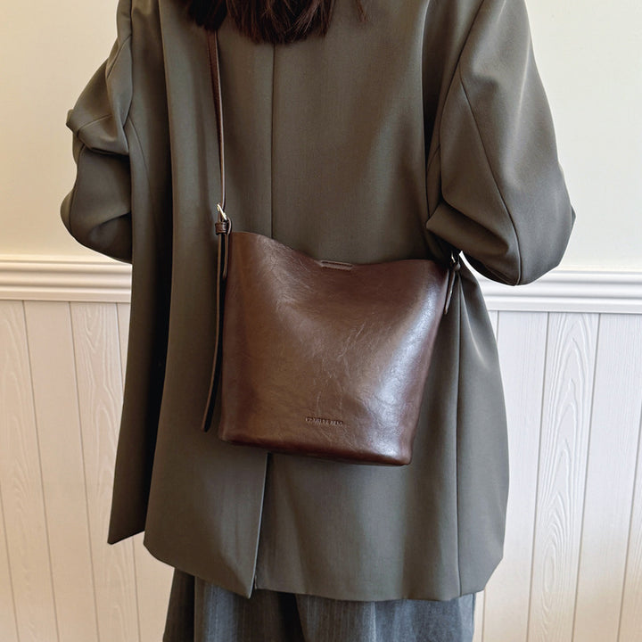 Retro niche design bag women's 2024 new simple messenger bag high-end fashion shoulder bucket bag