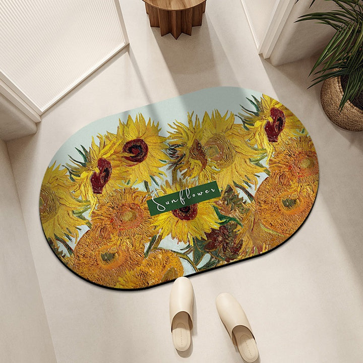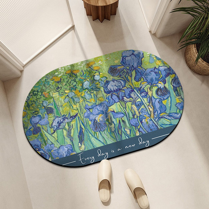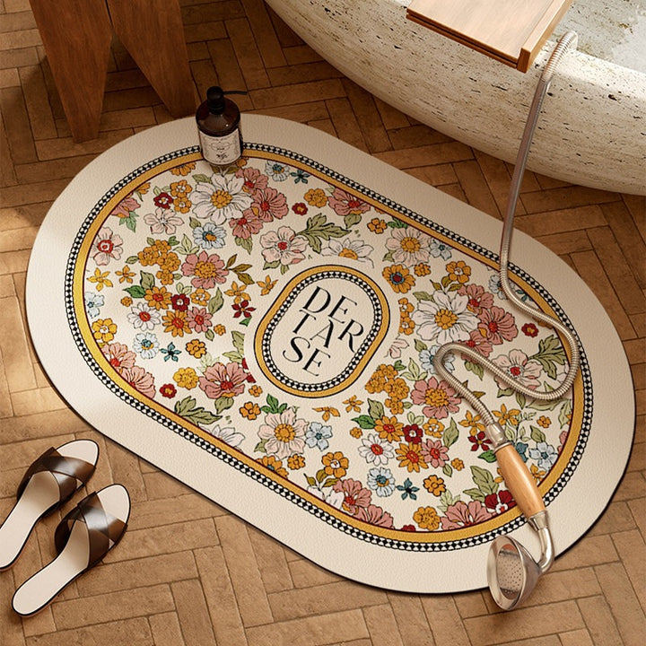 Retro oval bathroom floor mat, toilet non-slip mat, diatom mud absorbent mat, carpet, bathroom, toilet floor mat, door mat