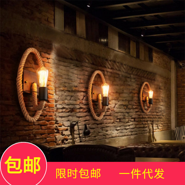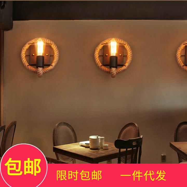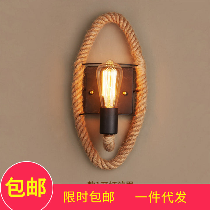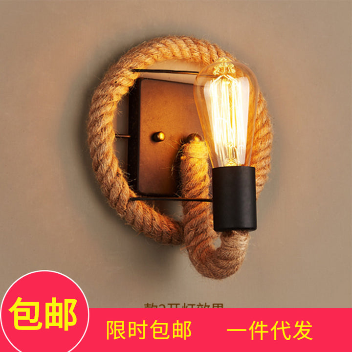 Retro personalized wall lamp American loft wrought iron bedside wall creative industrial style bar cafe guest restaurant hemp rope
