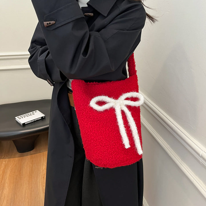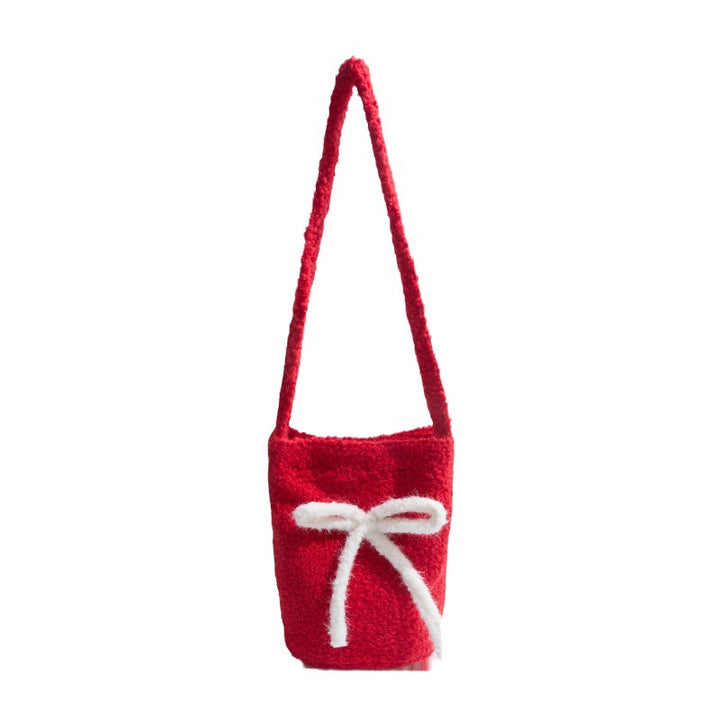 Retro plush large-capacity bucket bag women's versatile shoulder small crossbody cloth bag niche casual bag