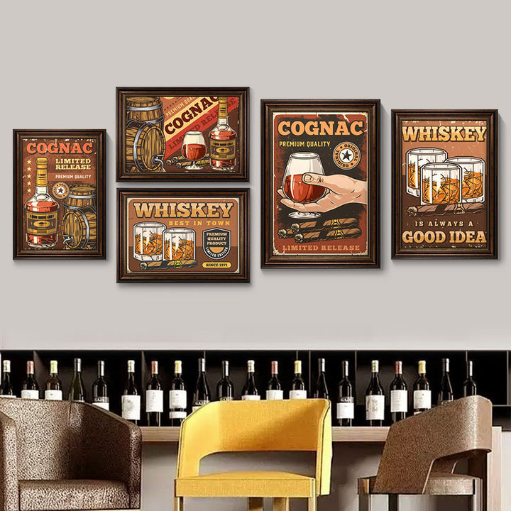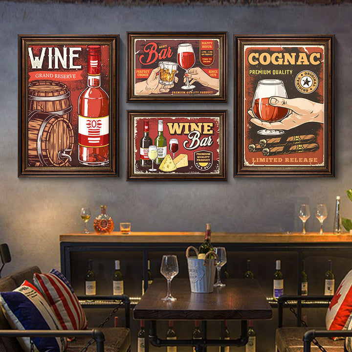 Retro pub red wine decoration painting creative American bar foreign wine cigar hanging painting tobacco and alcohol firm whiskey mural