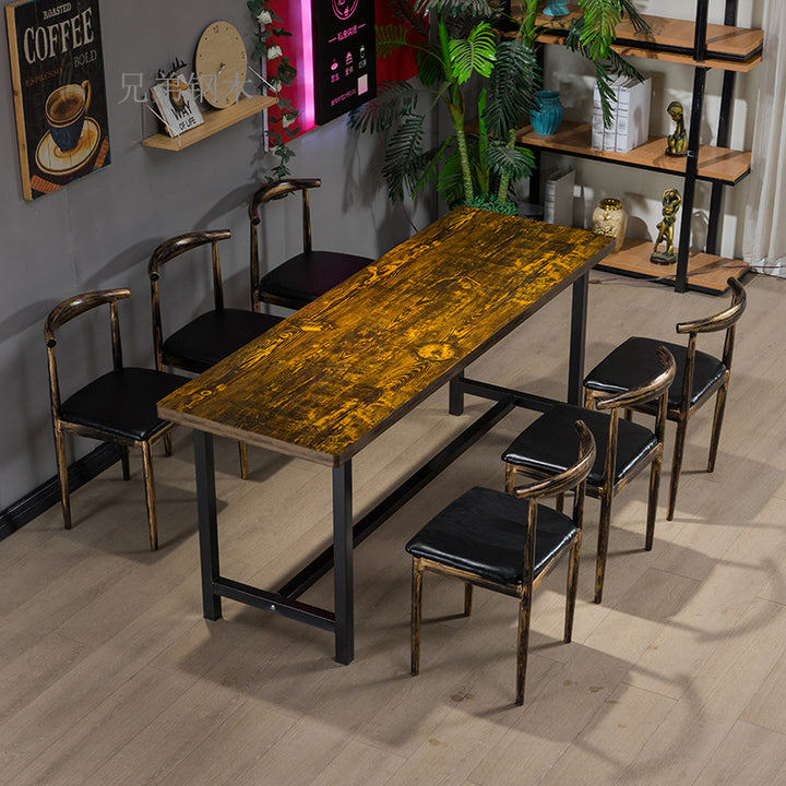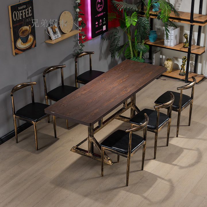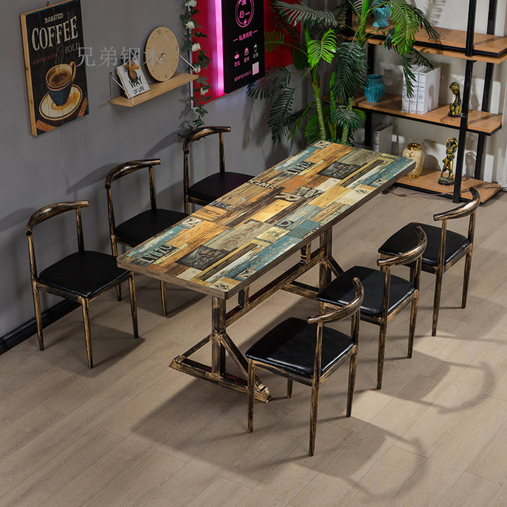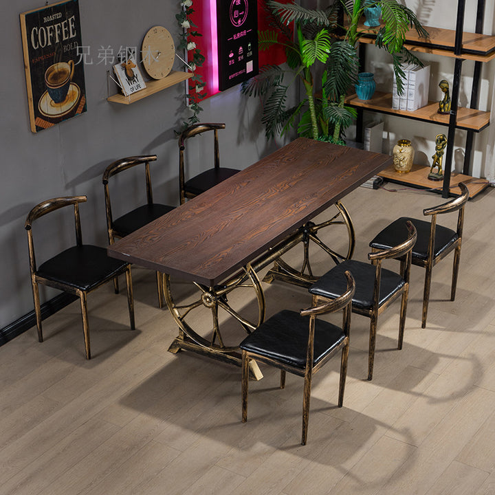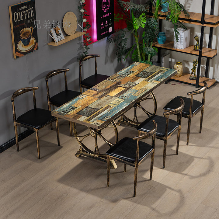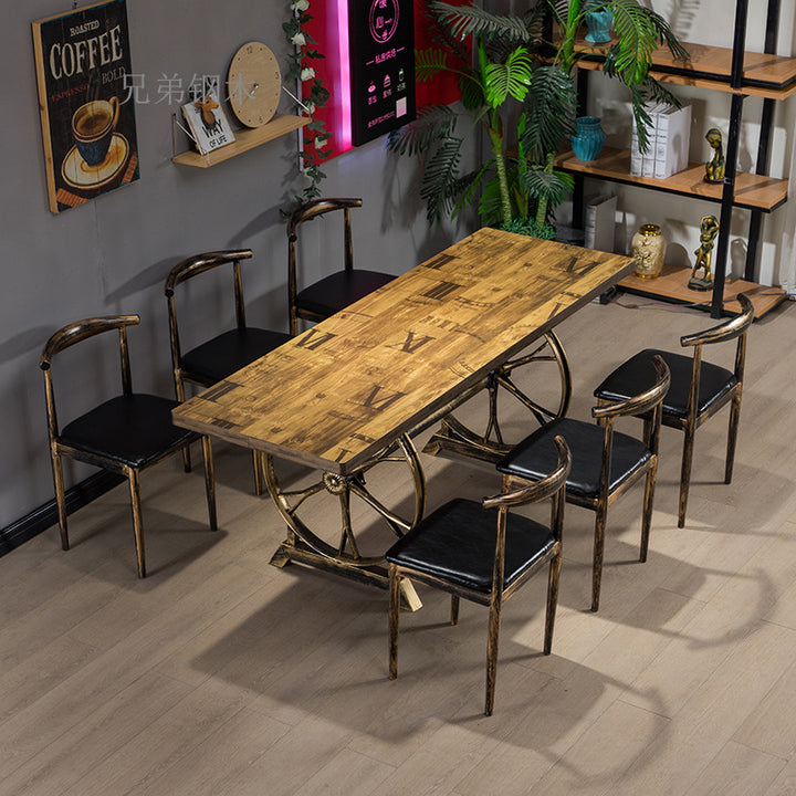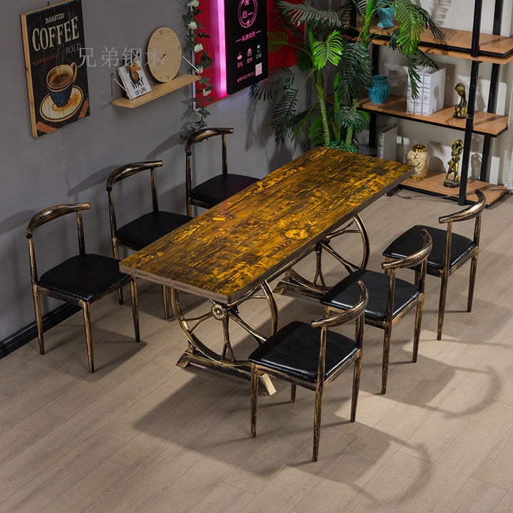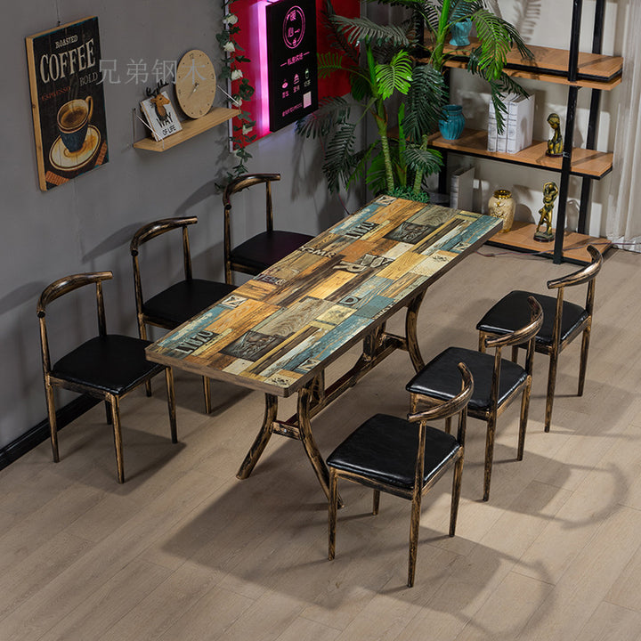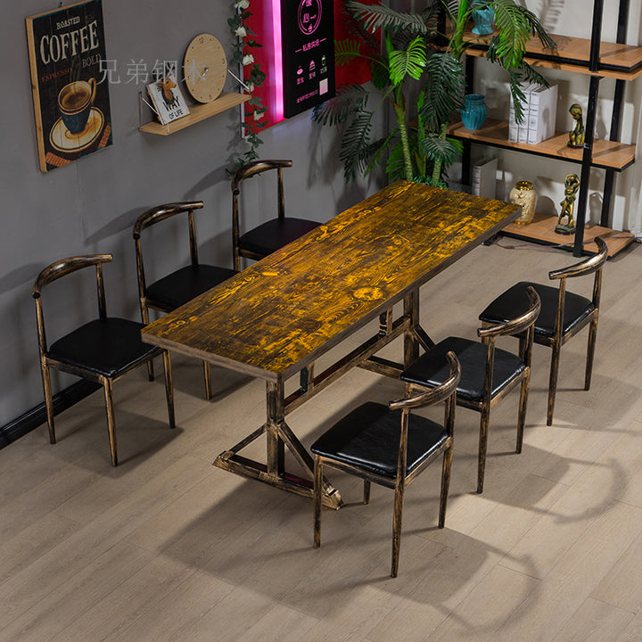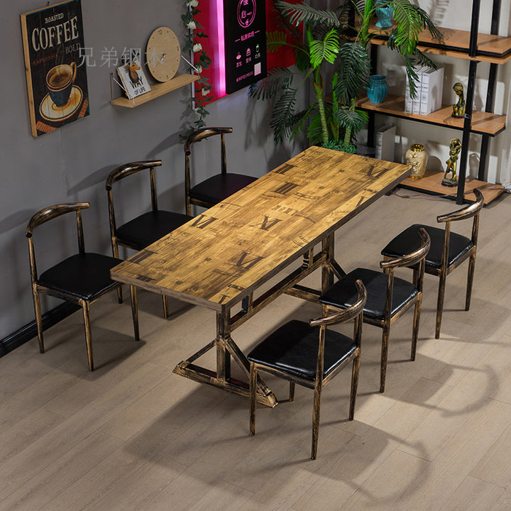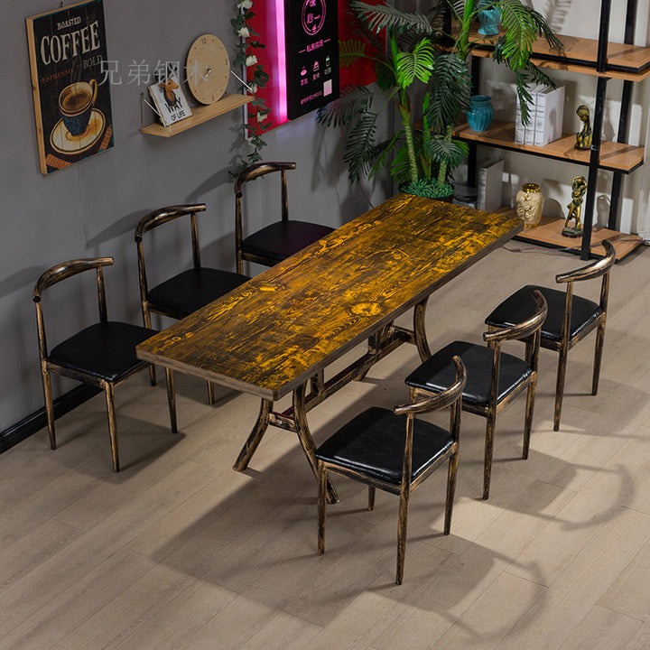 Retro six-person dining table and chair combination barbecue restaurant hot pot restaurant bar restaurant restaurant table and chair