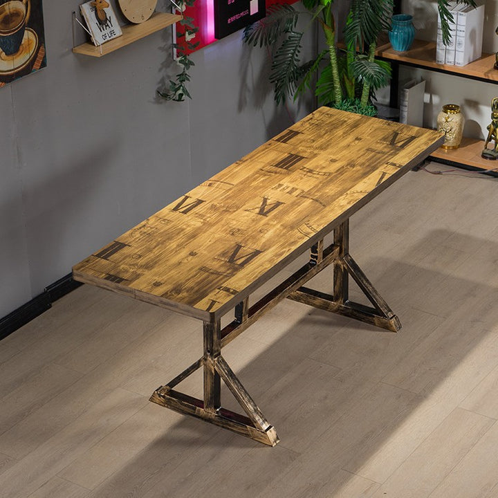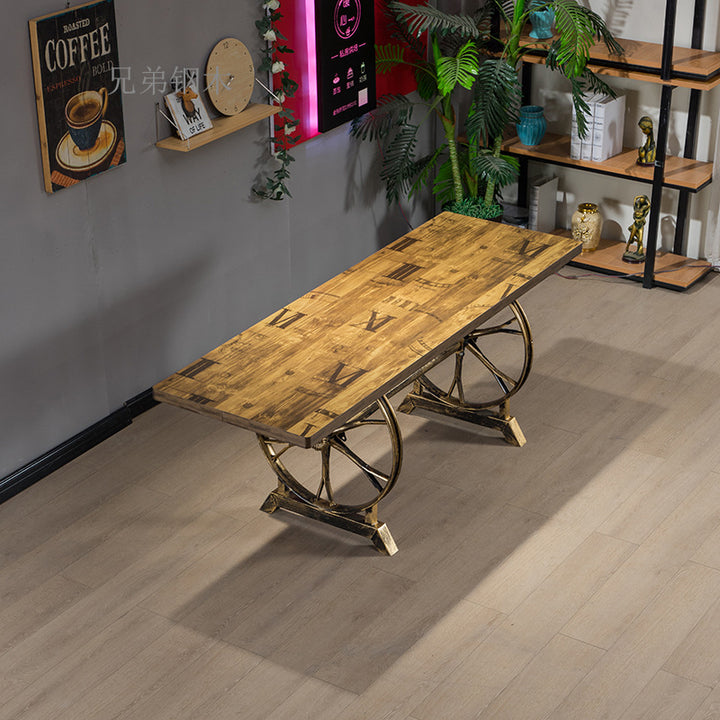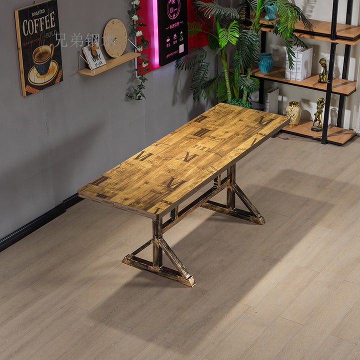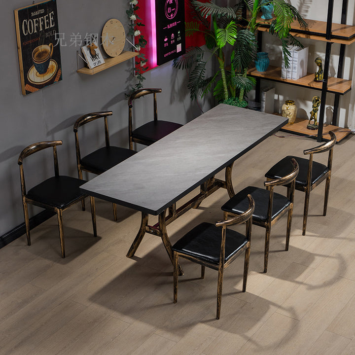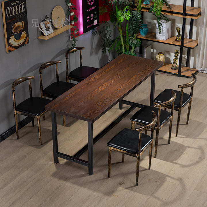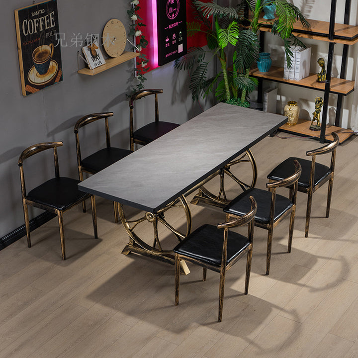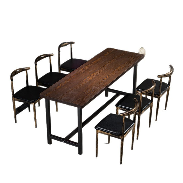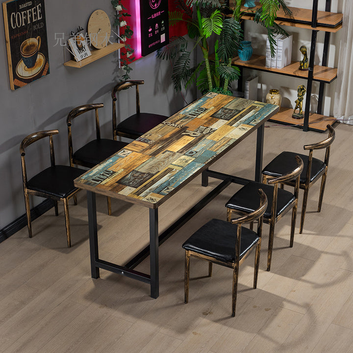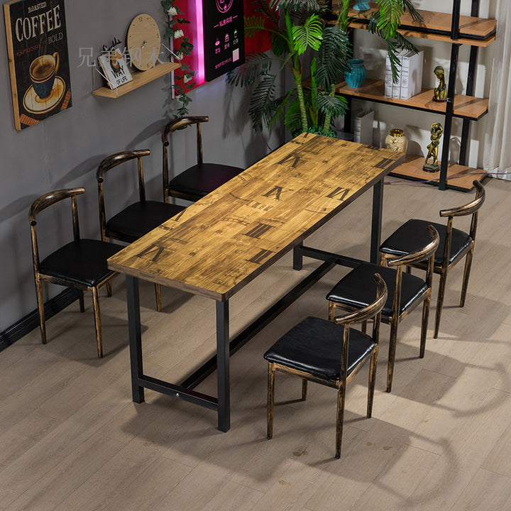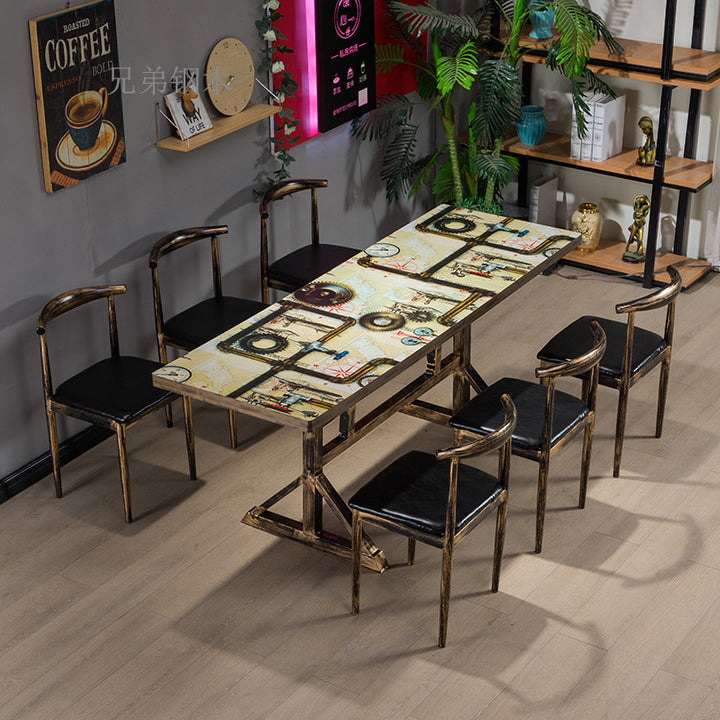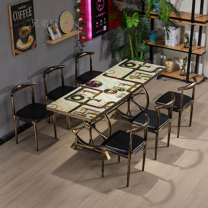 Retro six-person dining table and chair combination barbecue restaurant hot pot restaurant bar restaurant restaurant table and chair