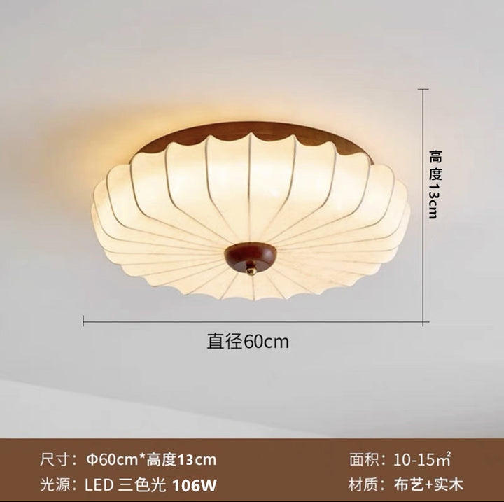 Retro solid wood bedroom fabric balcony French tea room Zen study Japanese wabi-sabi wind ceiling lamp medieval lamps