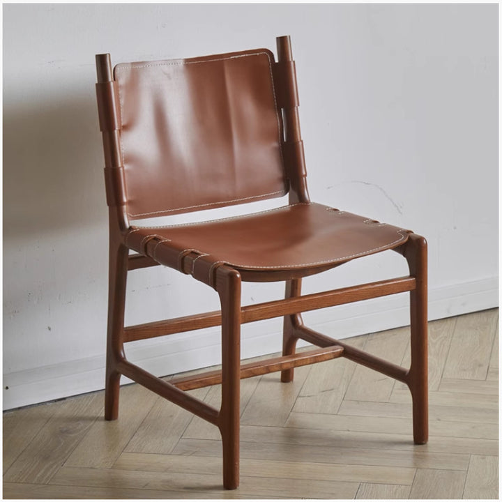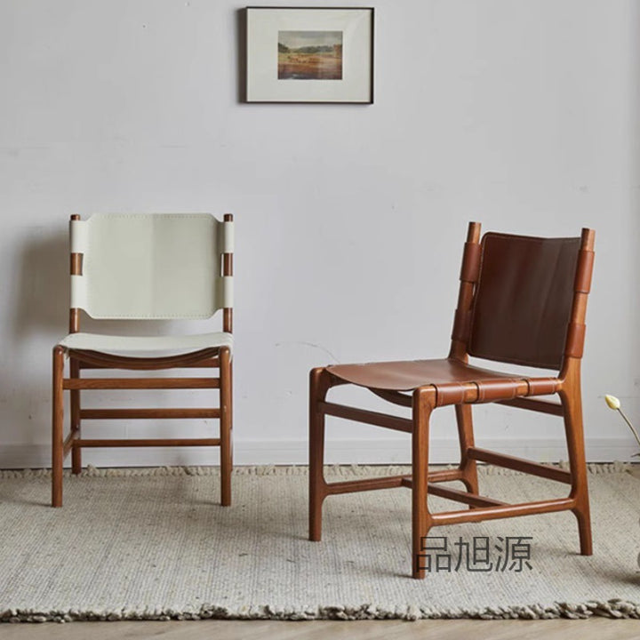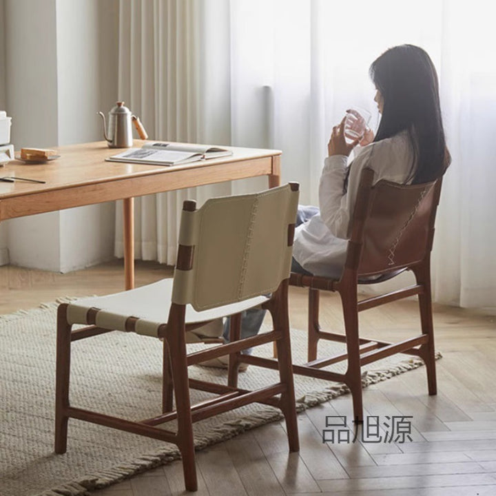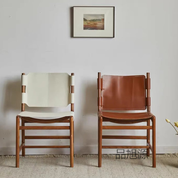 Retro solid wood dining chair restaurant cafe casual back chair medieval designer dining table chair saddle leather chair
