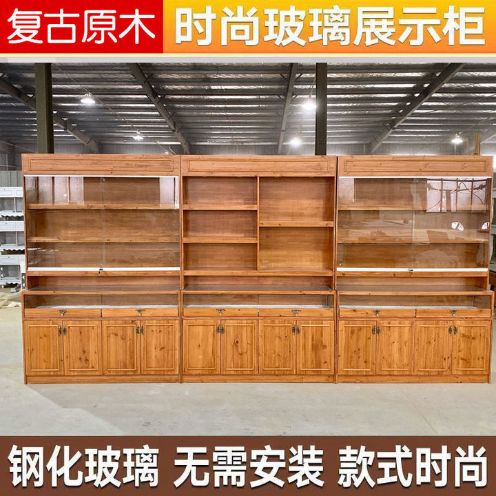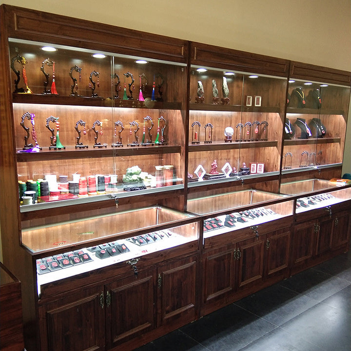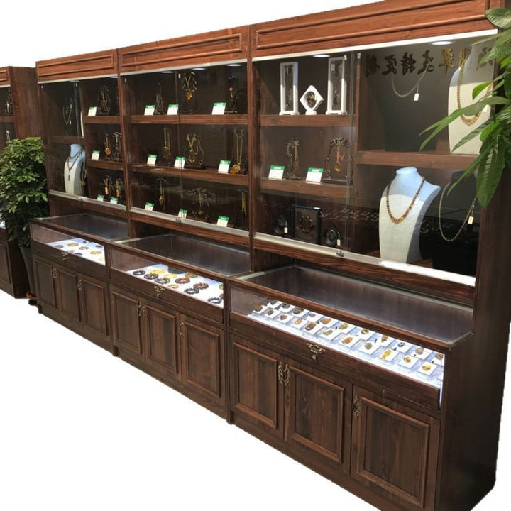 Retro Solid Wood Jewelry Display Cabinet Antique Jade Transparent Display Cabinet Jewelry Beeswax Jewelry Glass Zhongdao Display Cabinet