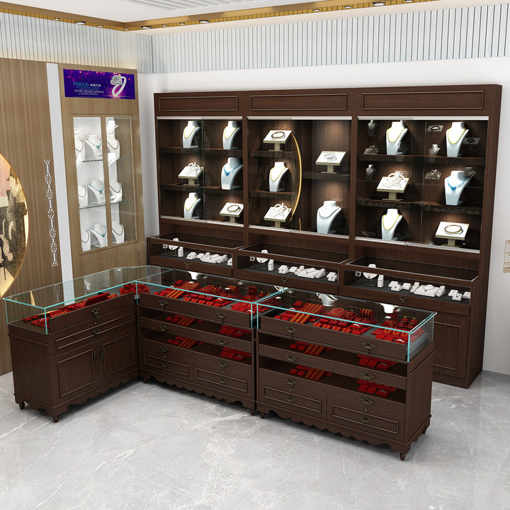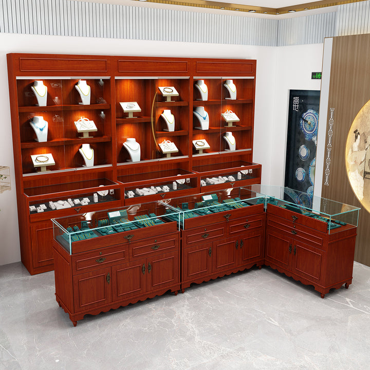 Retro Solid Wood Jewelry Display Cabinet Jewelry Cabinet Antique Jade Museum Display Cabinet Exhibition Hall Exhibition Hall Souvenir Counter