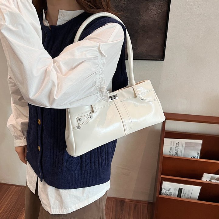 Retro versatile handbag shoulder messenger bag glossy trend simple high-end niche platinum bag