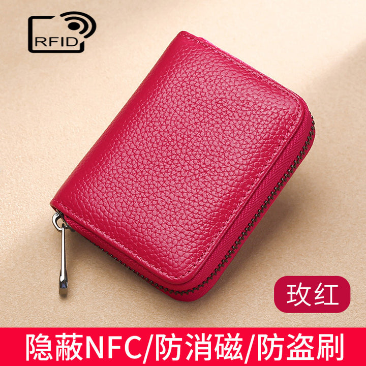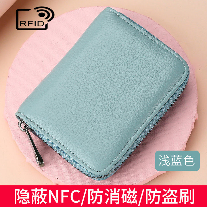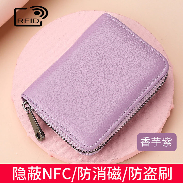 RFID anti-theft brush anti-degaussing PU leather card bag women's leather zipper bank card co...