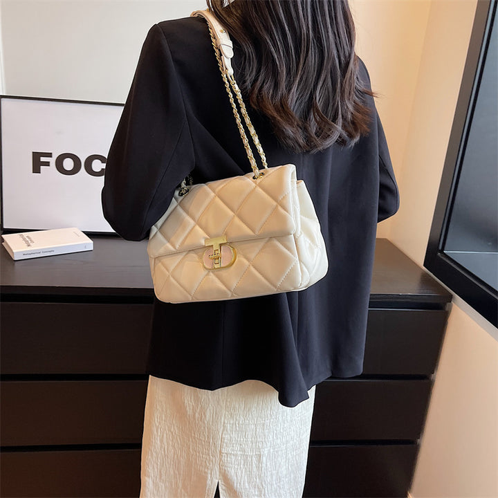 Rhombus chain bag texture shoulder small square bag women's bag 2025 new trendy fashion this year popular messenger bag