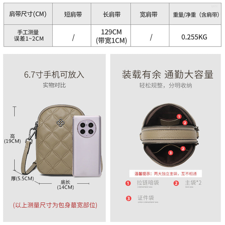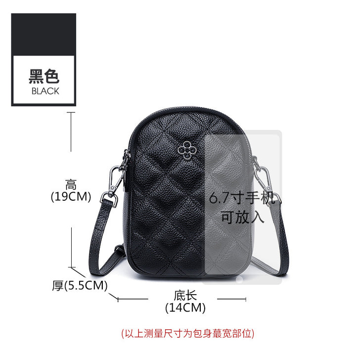 Rhombus pattern leather messenger bag women's vertical large-capacity mobile phone bag 2025 new lightweight mini shoulder small backpack