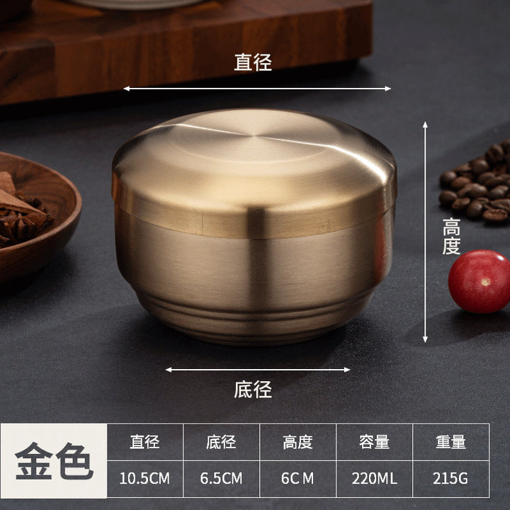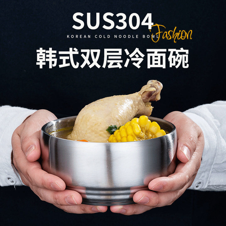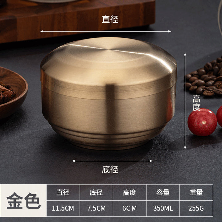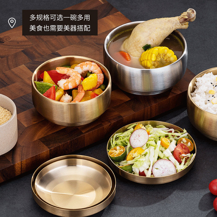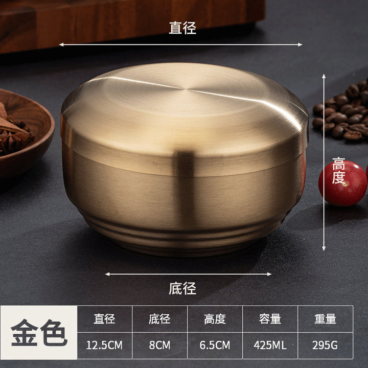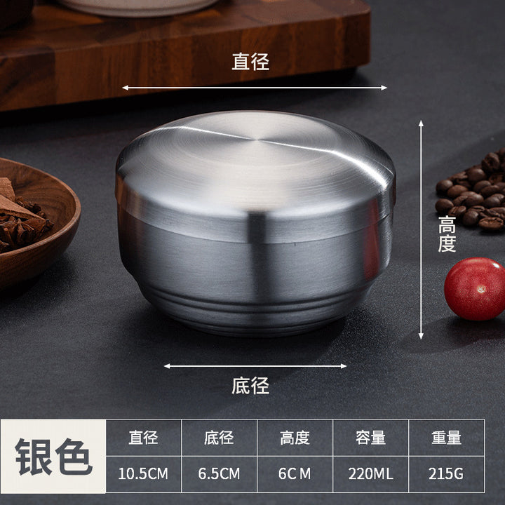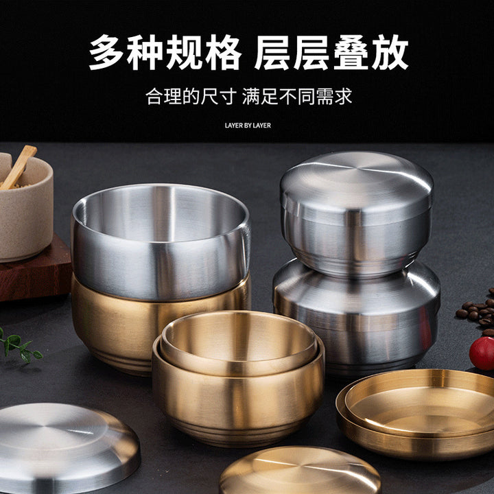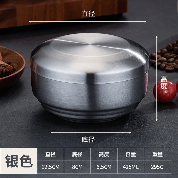 Rice bowl, four packs of Korean tableware, stainless steel double-layer rice bowl, anti-scald...