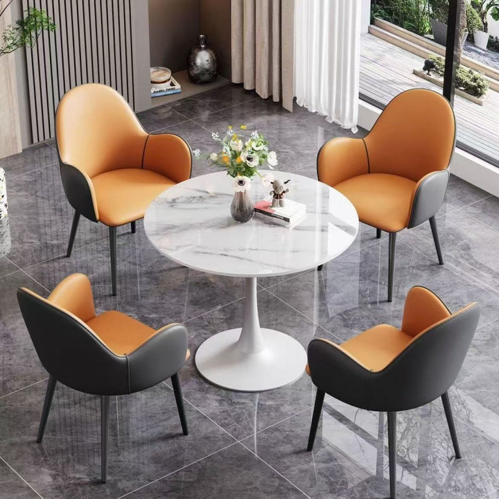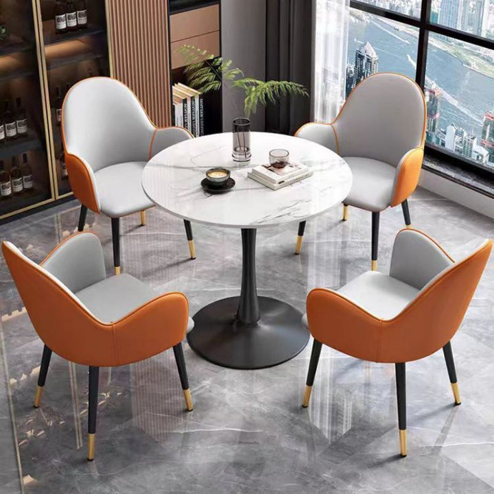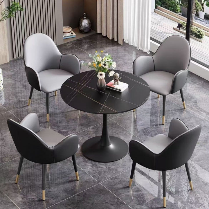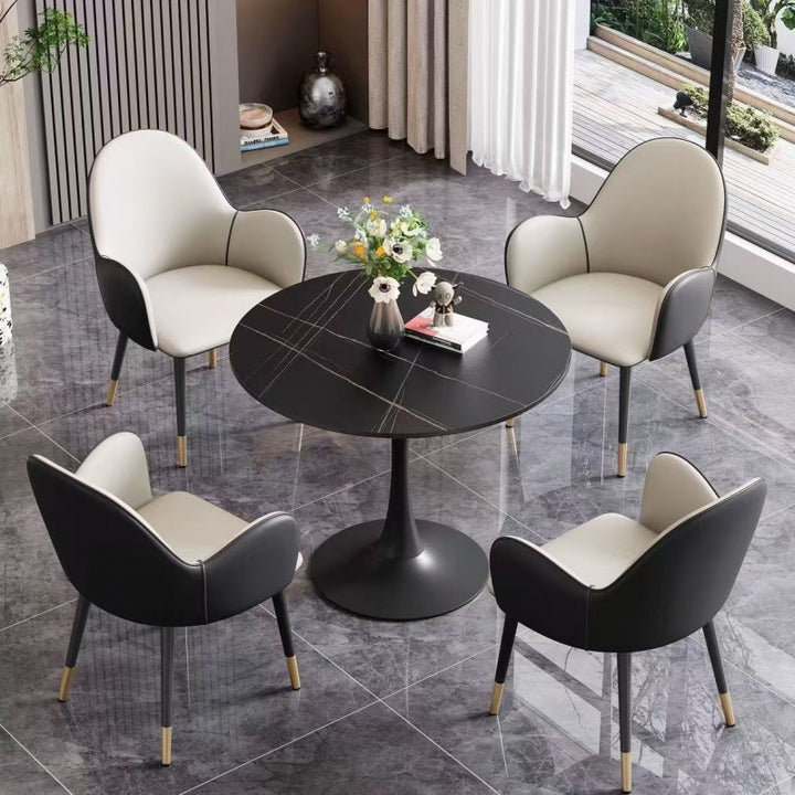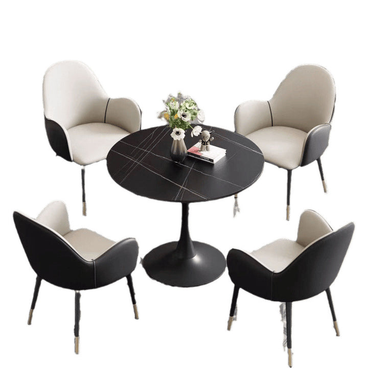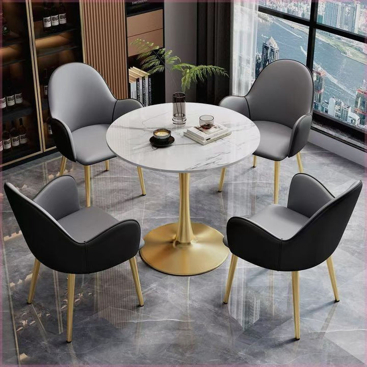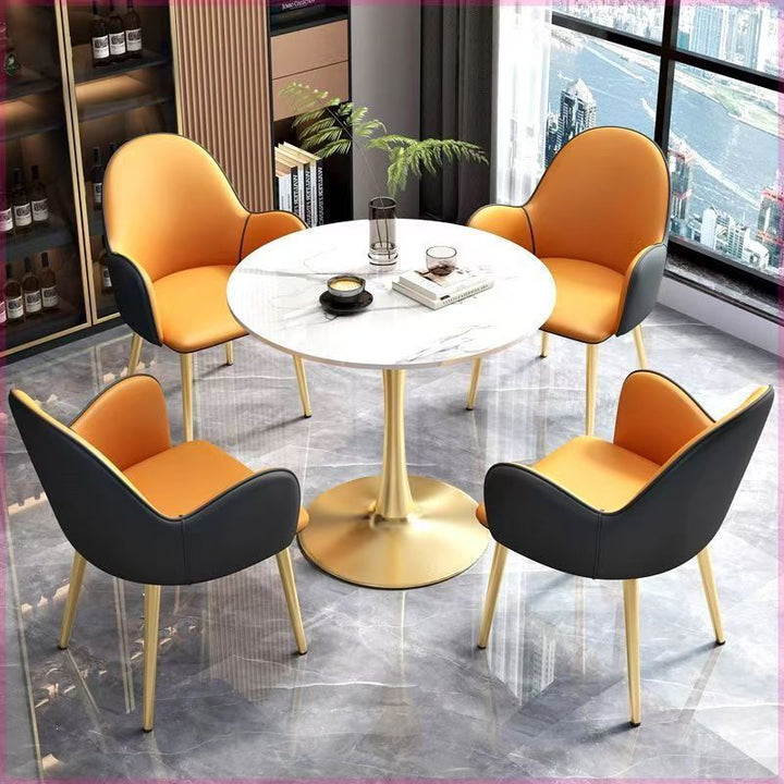 Rock slab negotiation table and chair combination cat claw leather chair reception table small round table balcony modern casual coffee light luxur...