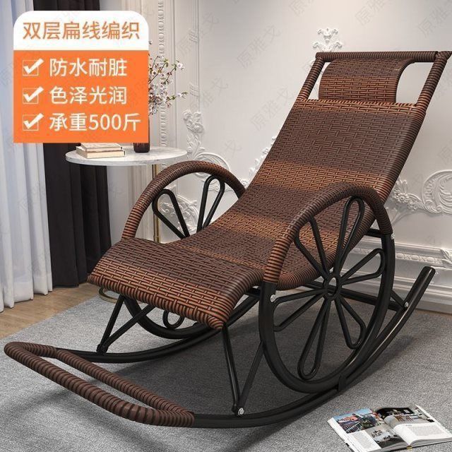 Rocking chair rattan chair adult nap recliner living room balcony free chair elderly leisure rocking chair rattan rocking chair lazy chair