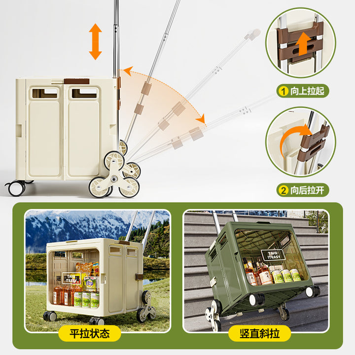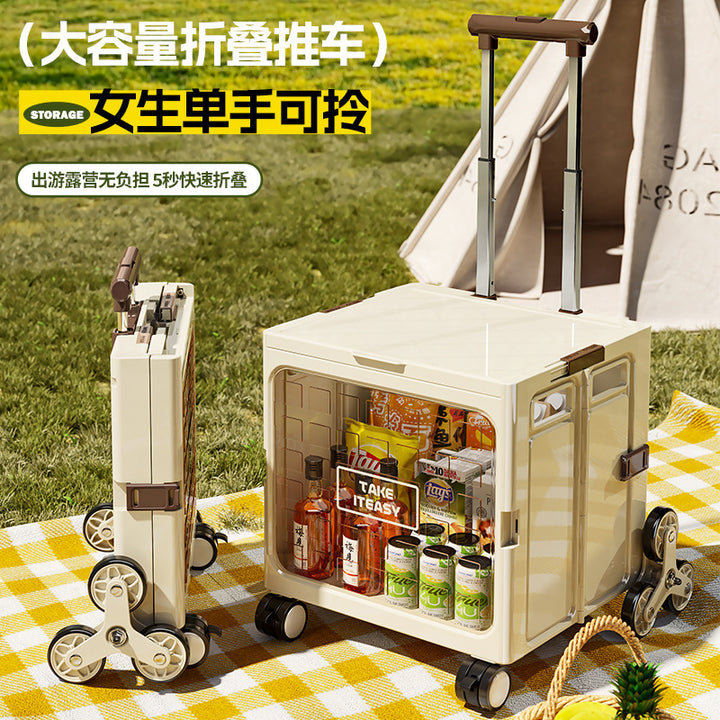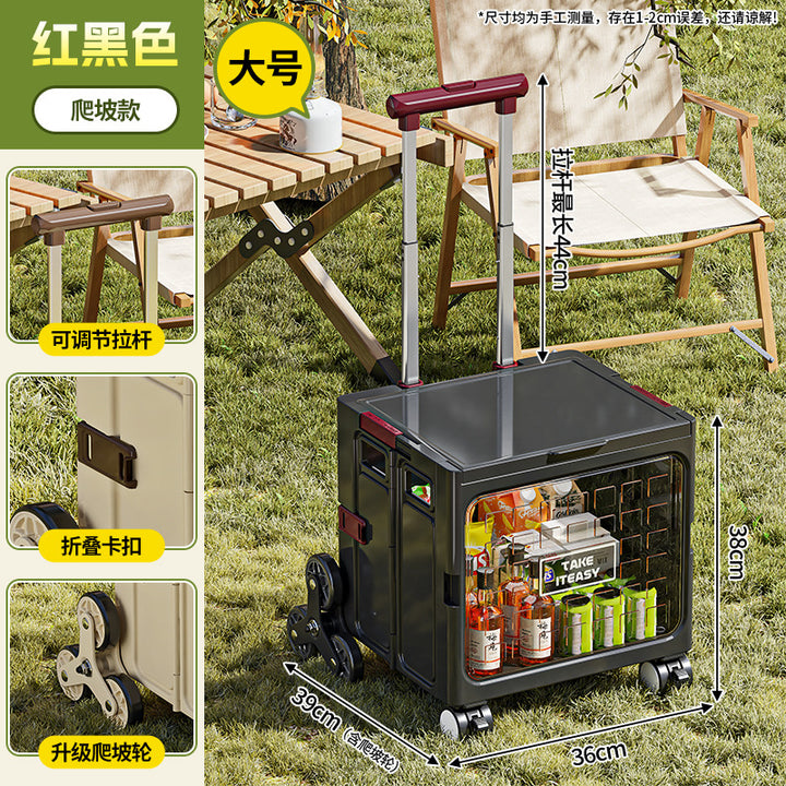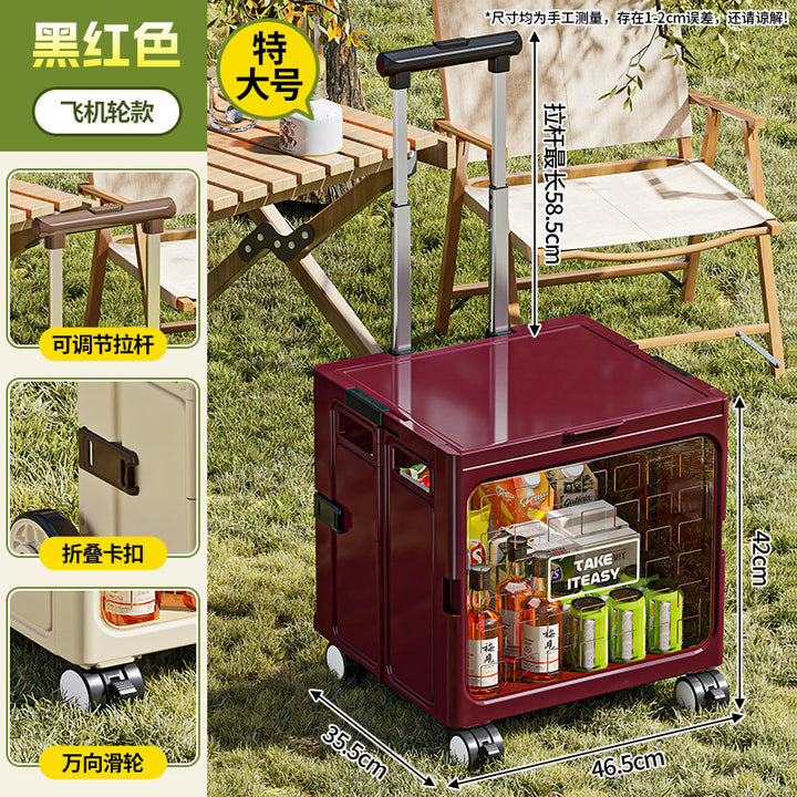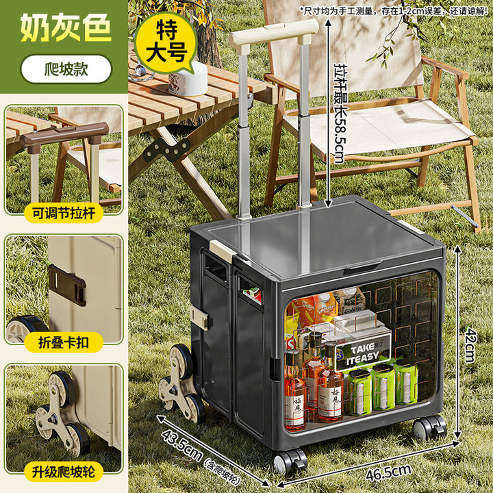 Rod storage box Car outdoor foldable hand-pulled camping Camping finishing box Multifunctional trolley with pulley