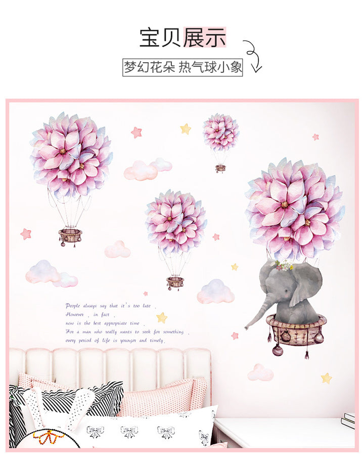 Romantic flower ball baby elephant children's room cabinet porch bathroom restaurant TV background wall decorative wall sticker HM92063