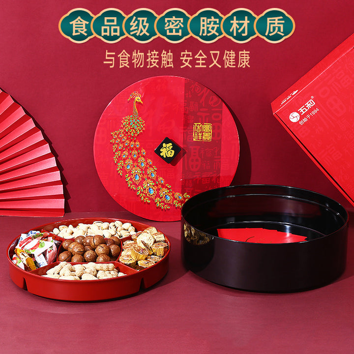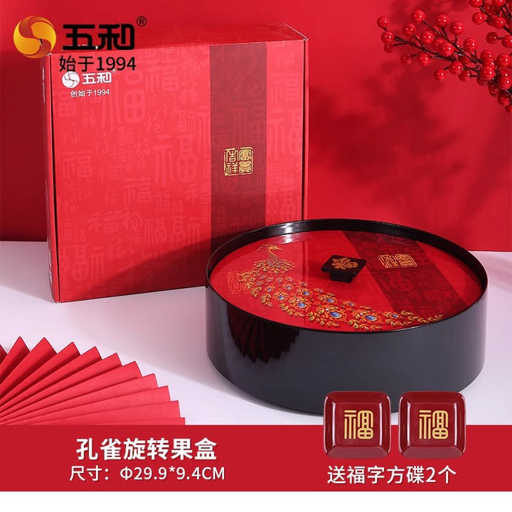Rotating fruit box + Fu square plate * 2, Rotating fruit box + Shou square plate * 2, Rotating fruit box + happy square plate * 2, Peacock Rotating Fruit Box |