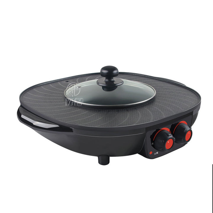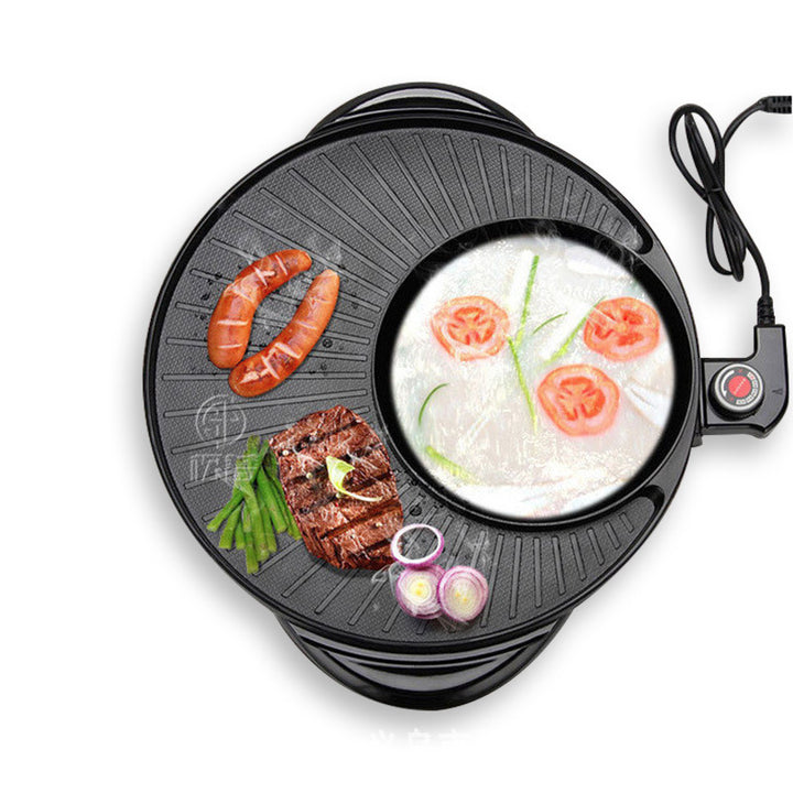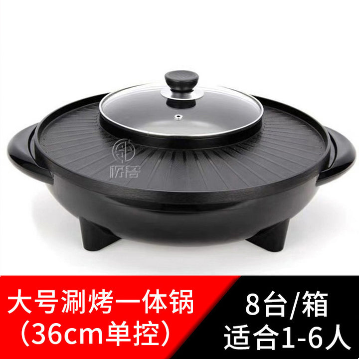 Round rinse and bake integrated pot BBQ hot pot Multifunctional rinse and bake integrated pla...
