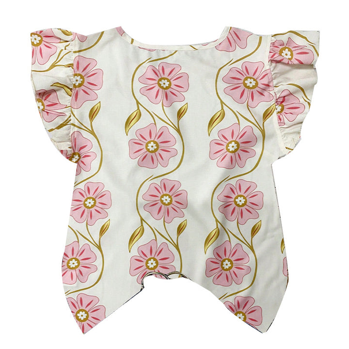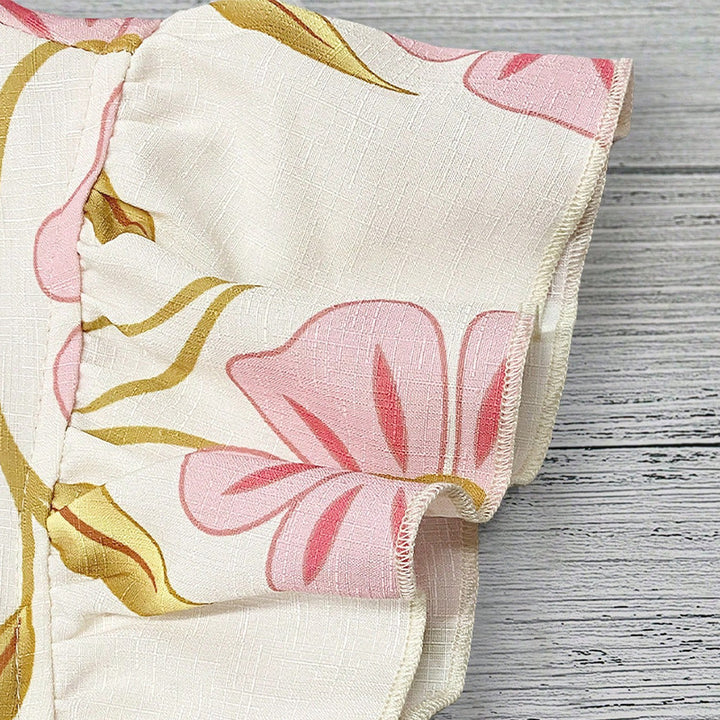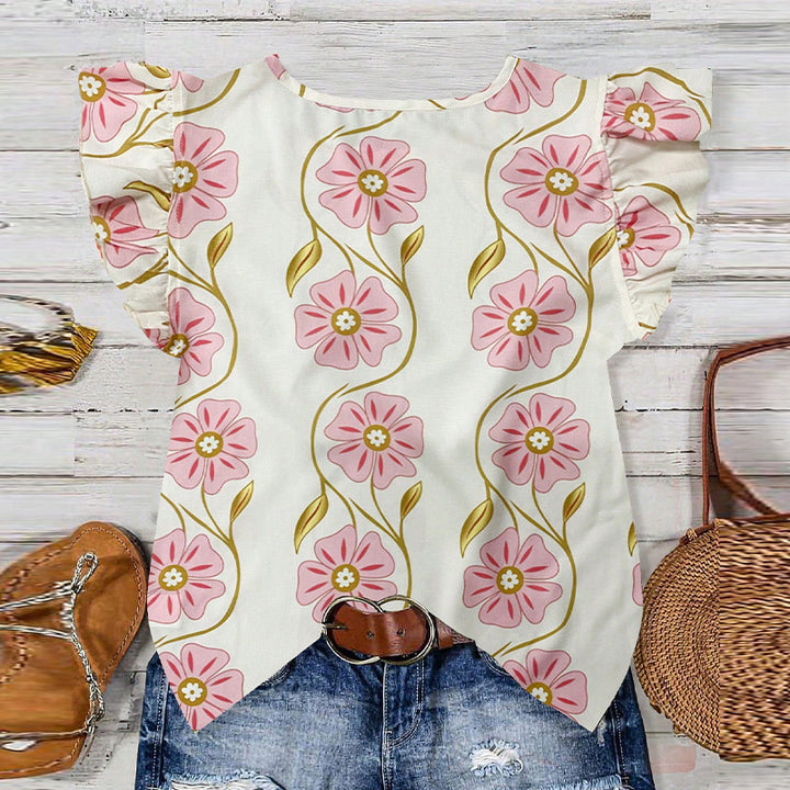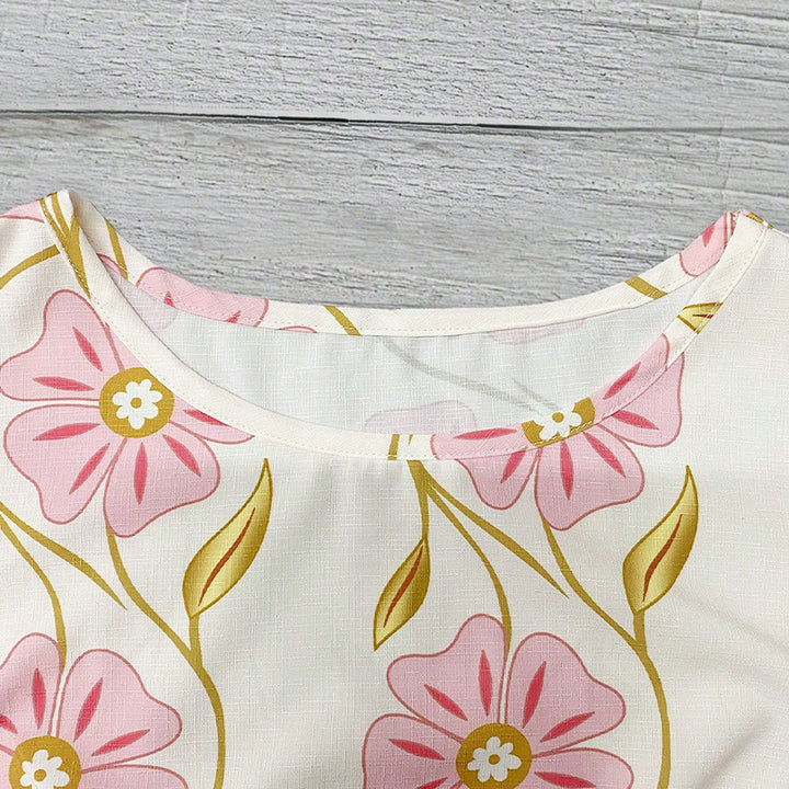 Ruihu European and American printed shirts 2025 summer vacation style lace round neck pullover