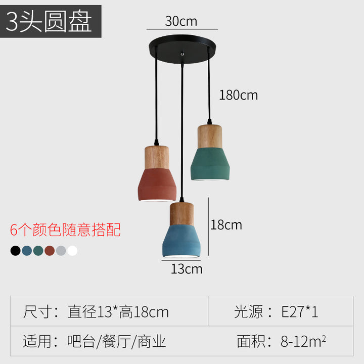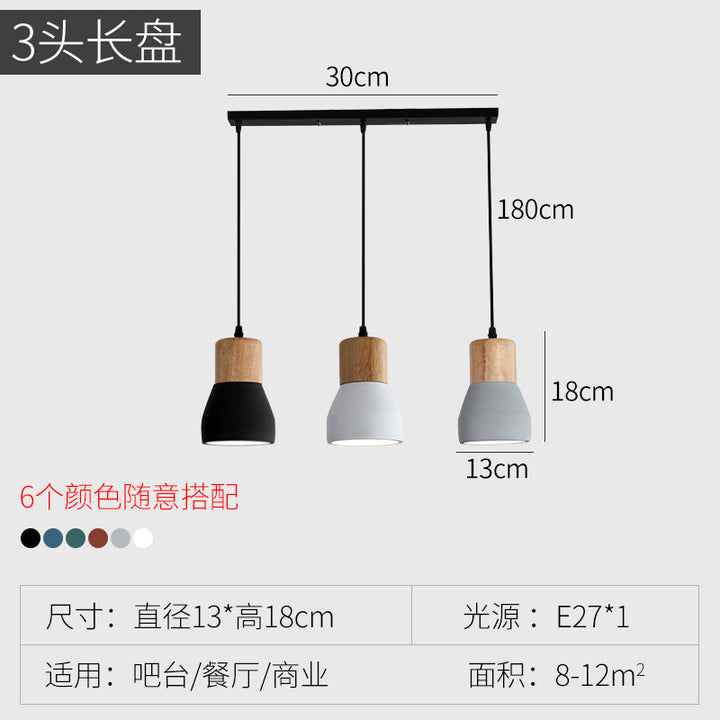 Rural restaurant chandelier simple modern personality creative retro solid wood head cement lamp three single head classical