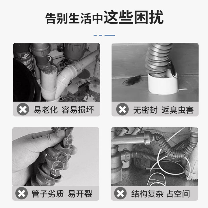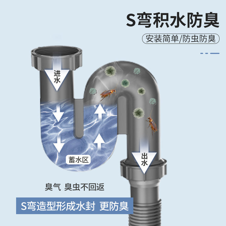 S curved sewer pipe, kitchen washing basin sewer, full set of accessories, space-saving and anti-return odor sewer pipe drain pipe