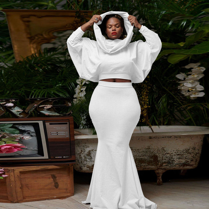 S10615 European and American, sexy, slim fit, solid color hooded fishtail skirt set
