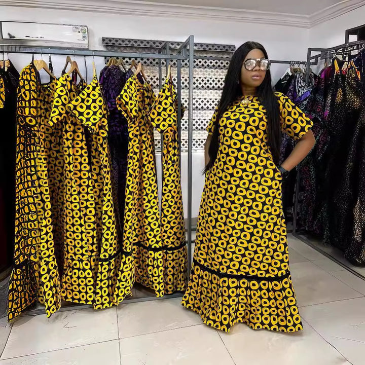 S10722 European and American, sexy printed large skirt loose strap pullover large size dress