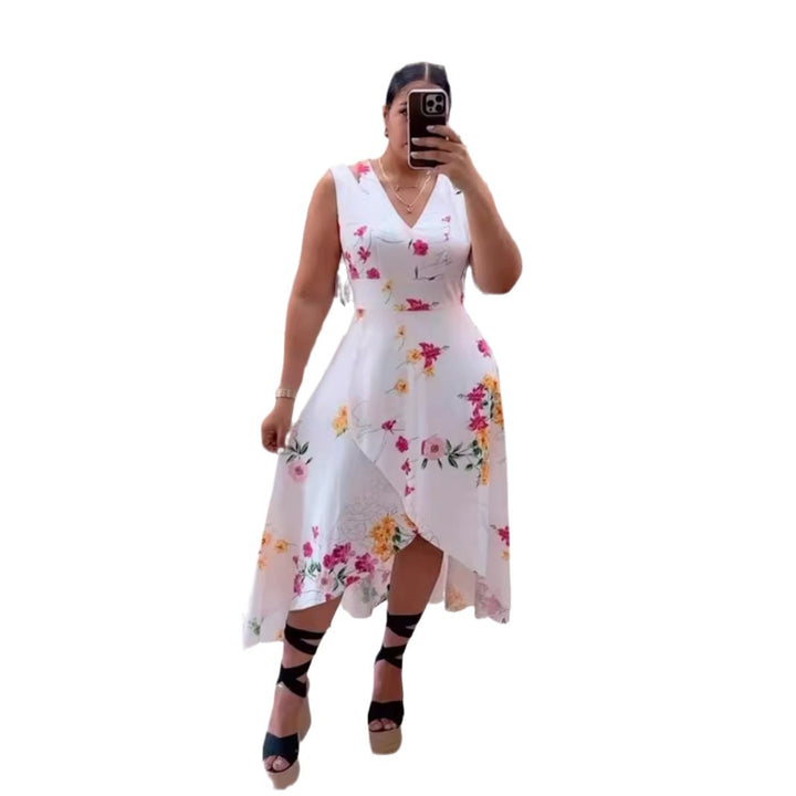 S10785 European and American, sexy printed waist V-neck sleeveless split summer dress