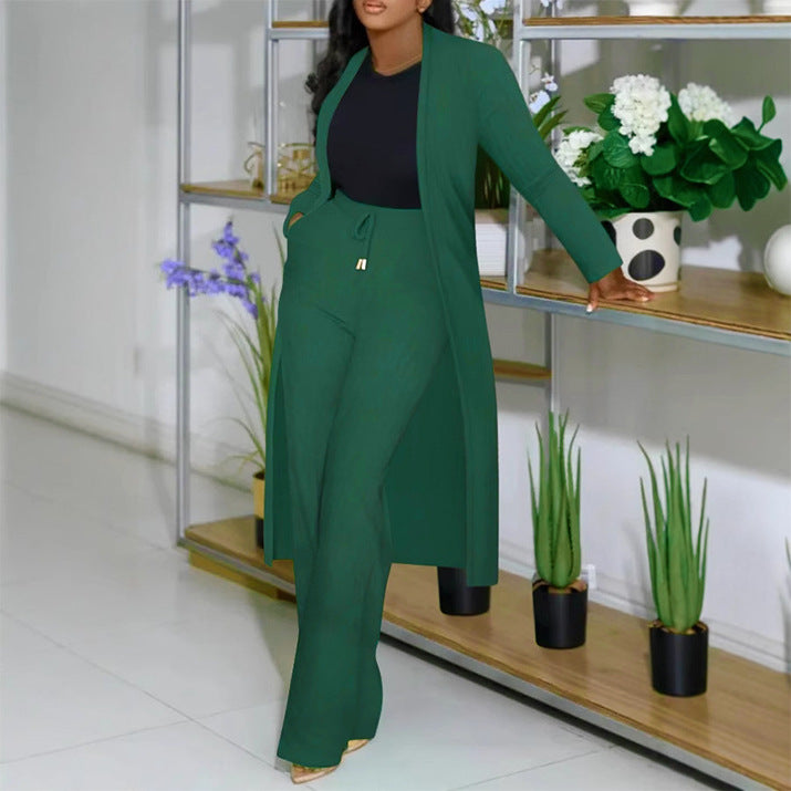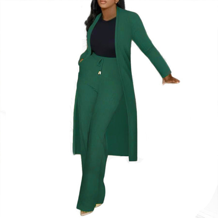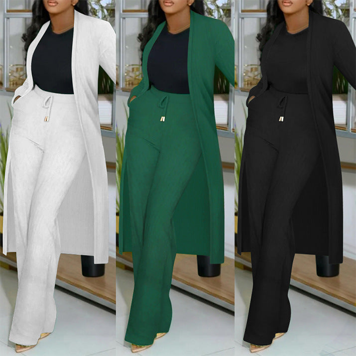 S10976 European and American long cardigan pit strip wide-leg pants two-piece set