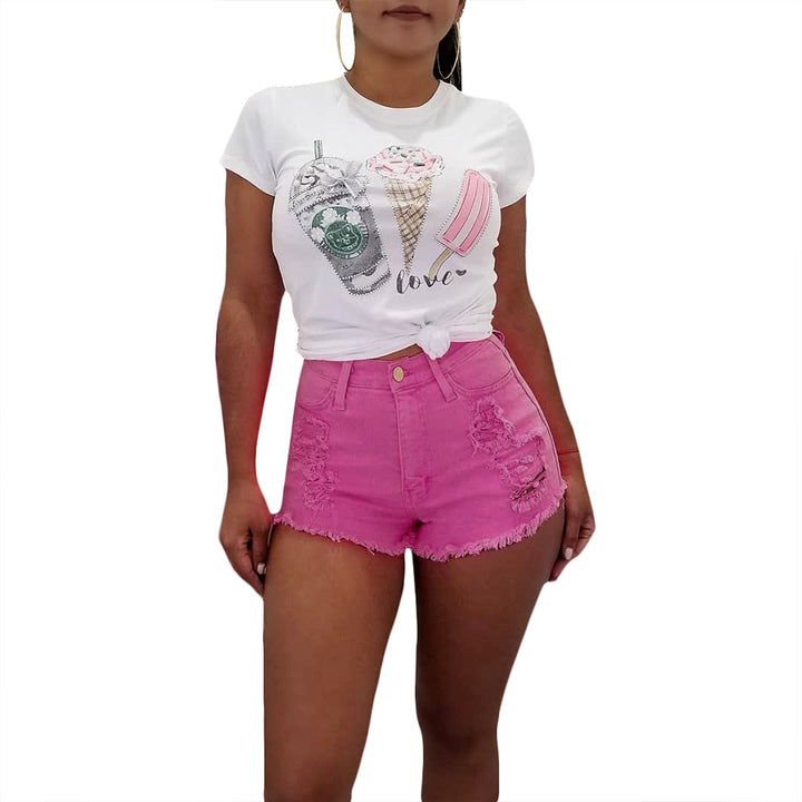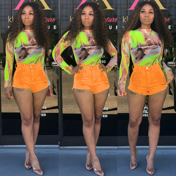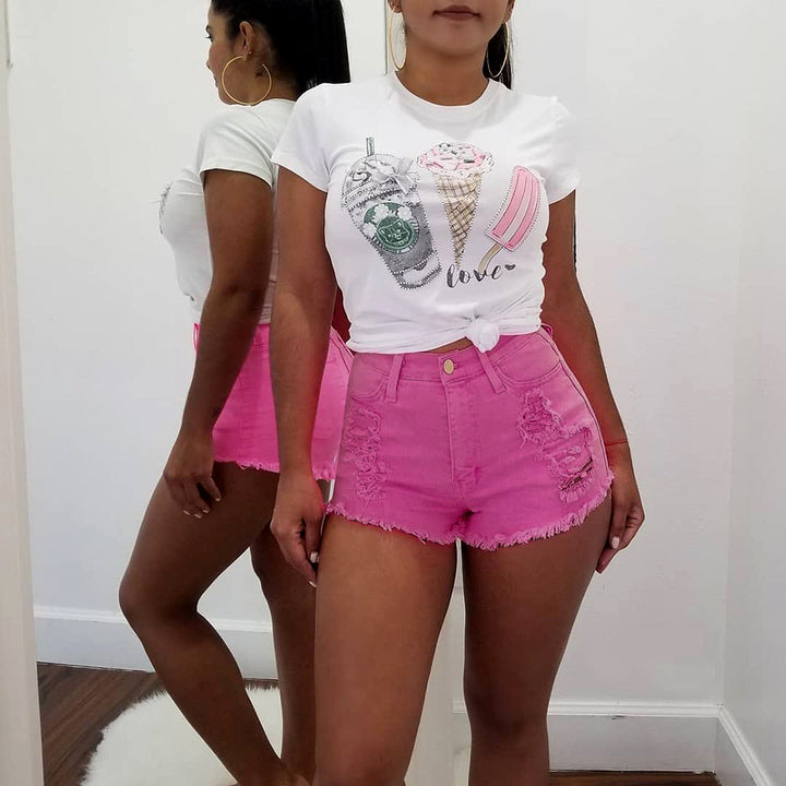 S3561 Sexy slim-fit polished ripped washed denim shorts women's multi-color pencil pants