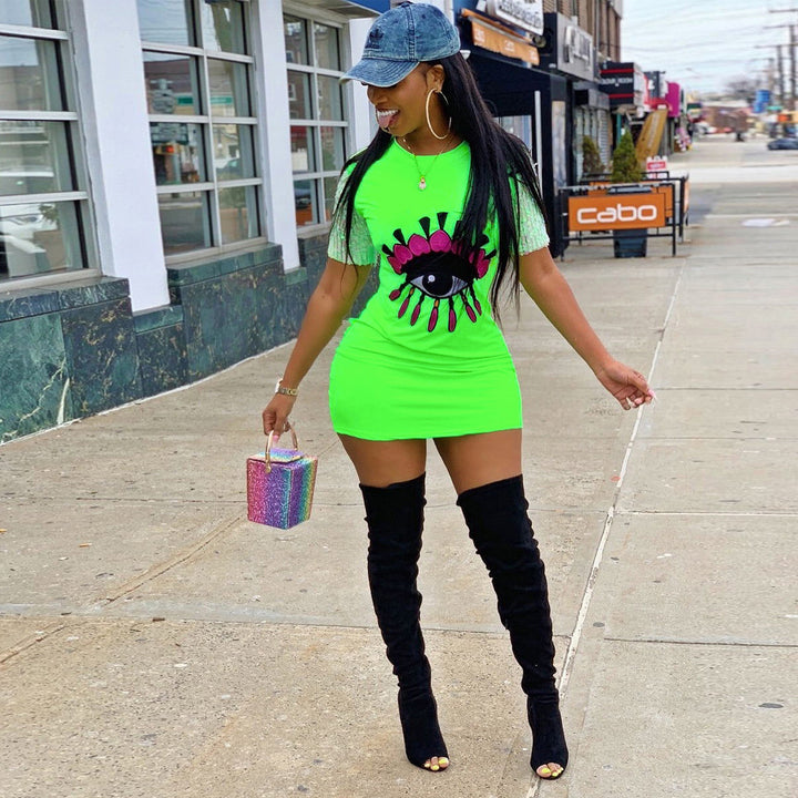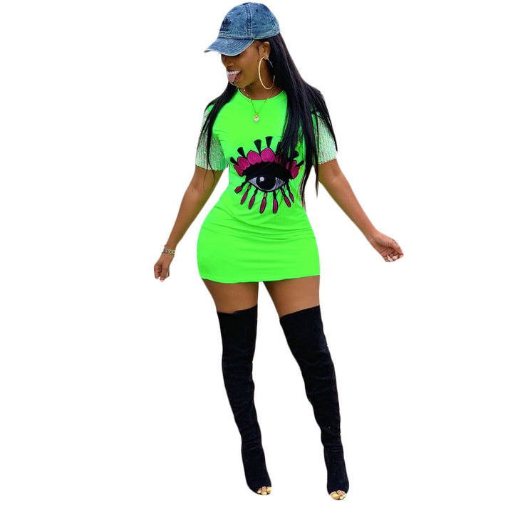 S3628 Cross-border European and American fashion casual bead sleeve sticker eye slim hip wrap dress women's t-skirt