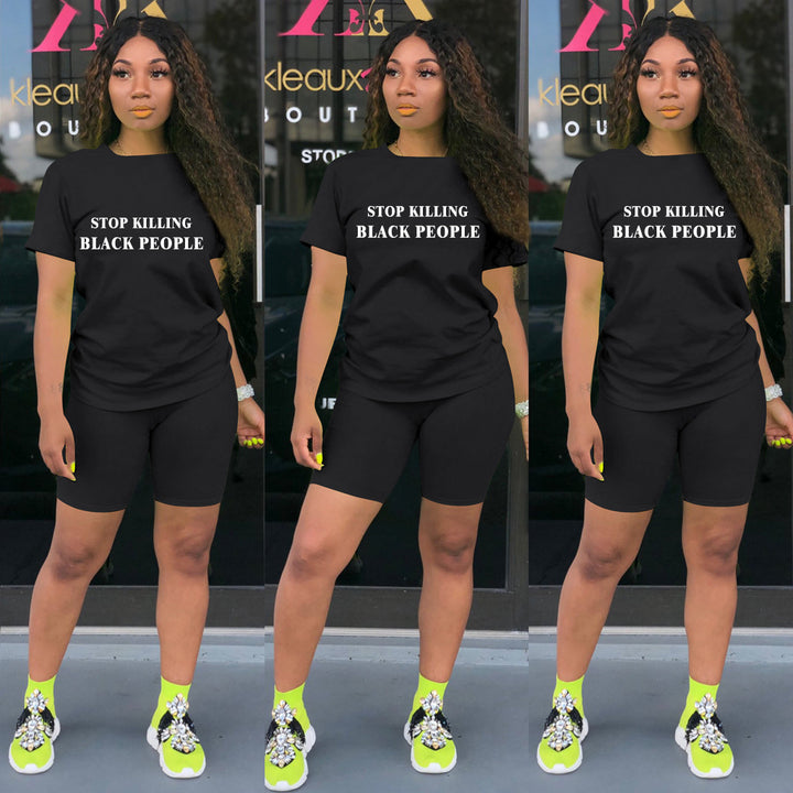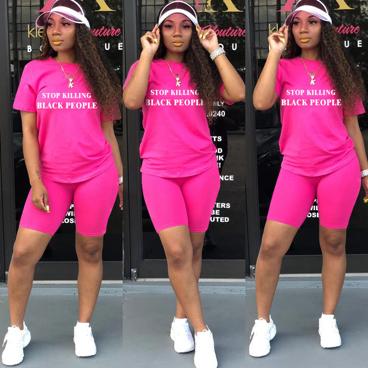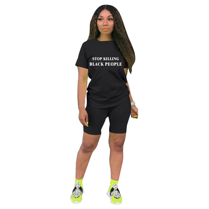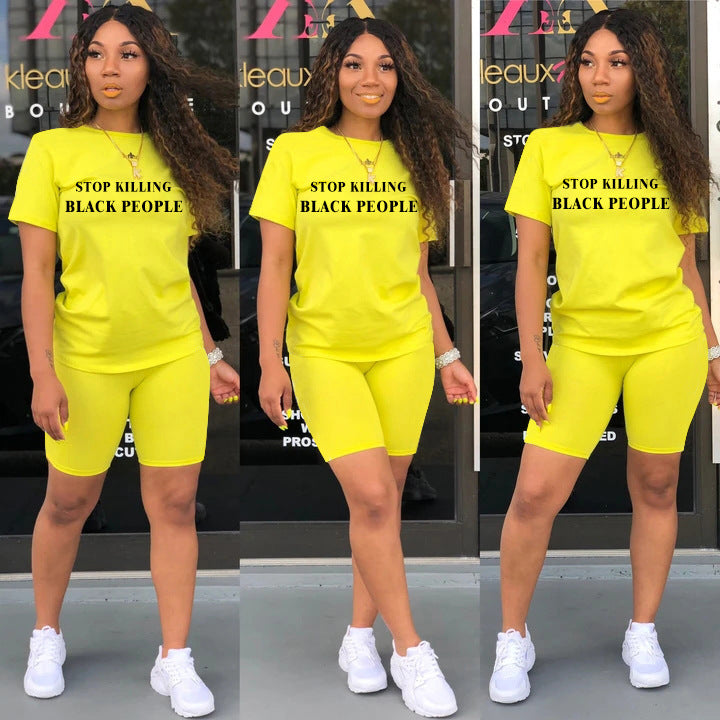 S3787 Cross-border European and American summer new fashion letter printing sports two-piece ...