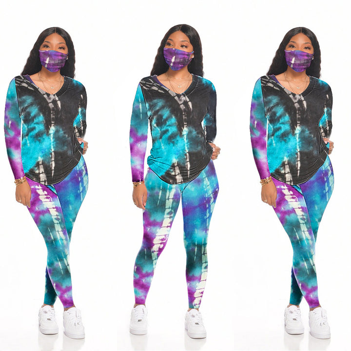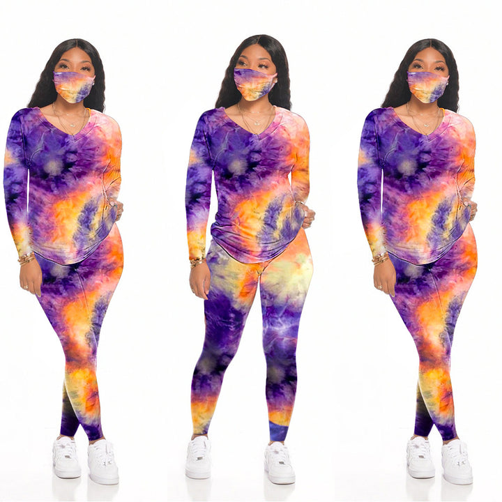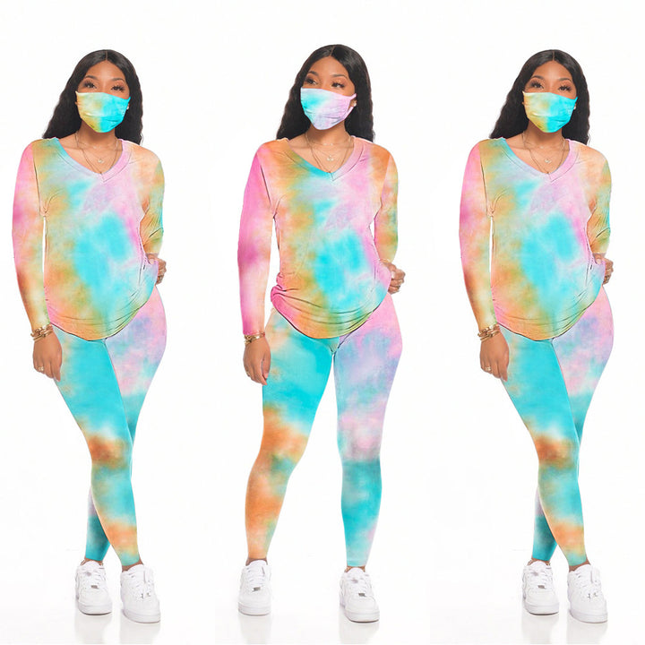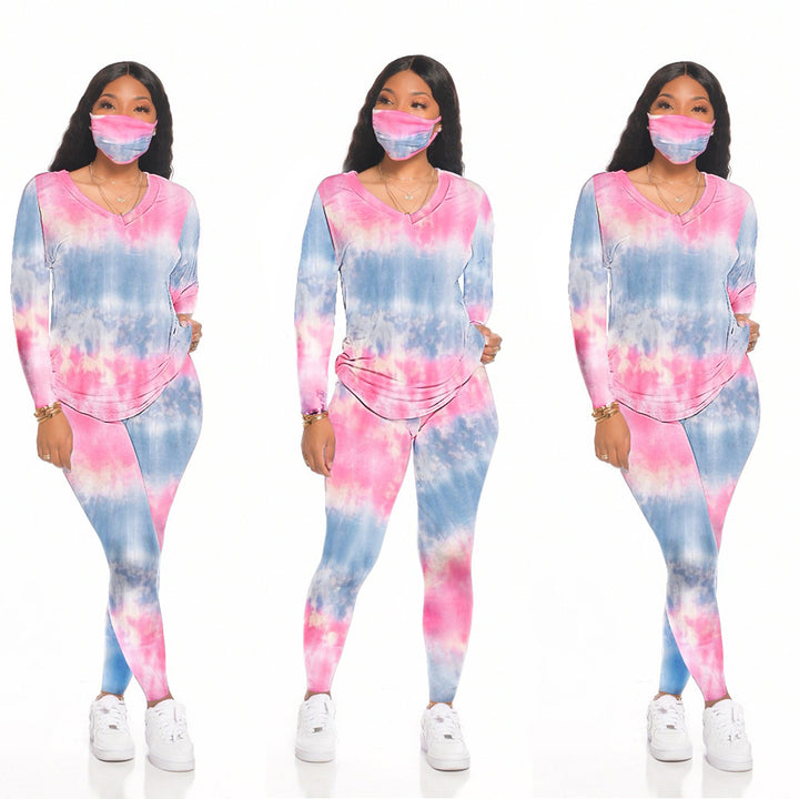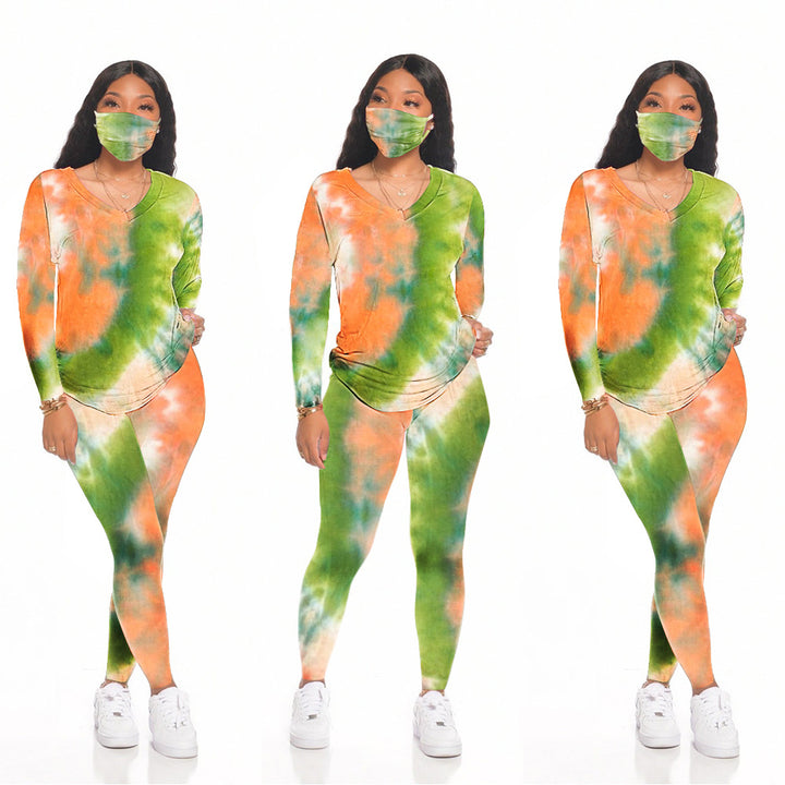 S3891 new hot-selling casual tie-dye round neck home sports trousers set multi-color wholesa...