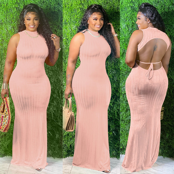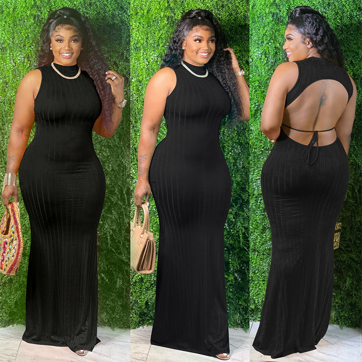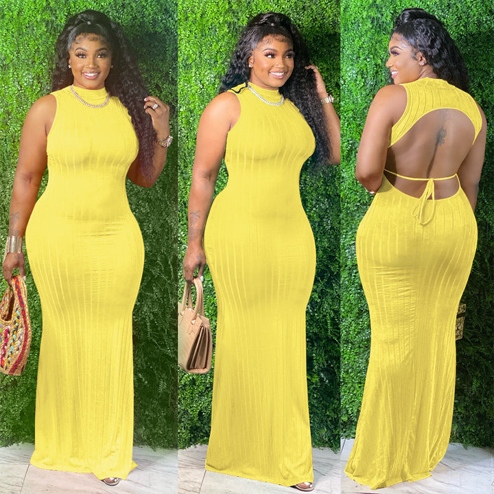 S390137 European and American women's clothing sexy hollow backless solid color pullover medium and long dress