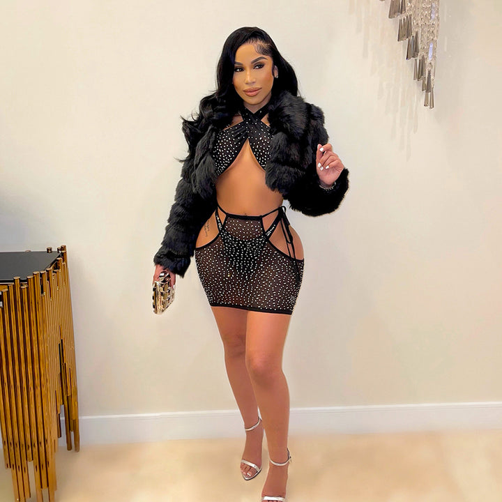 S390256 Cross-border Women's Ball Dress Evening Dress Elegant Sexy Hot Diamond Skirt Suit Women