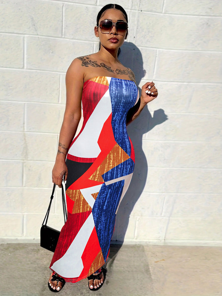 S390584 Cross-border Europe and America Summer Fashion Temperament Elegant Printed Pullover Sleeveless Dress Women's Medium and Long