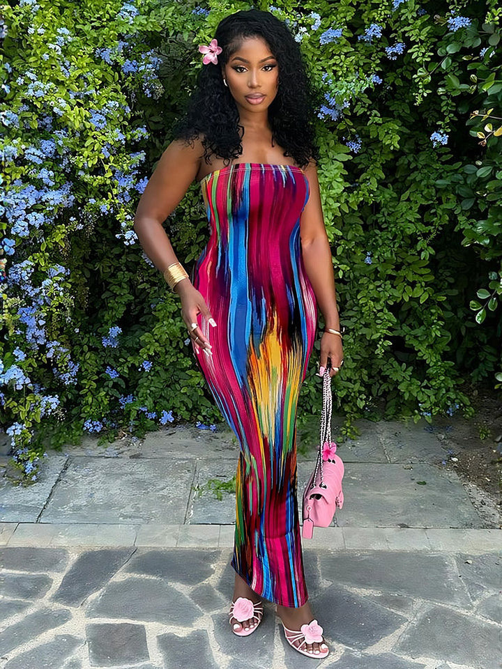 S390584 Cross-border Europe and America Summer Fashion Temperament Elegant Printed Pullover Sleeveless Dress Women's Medium and Long