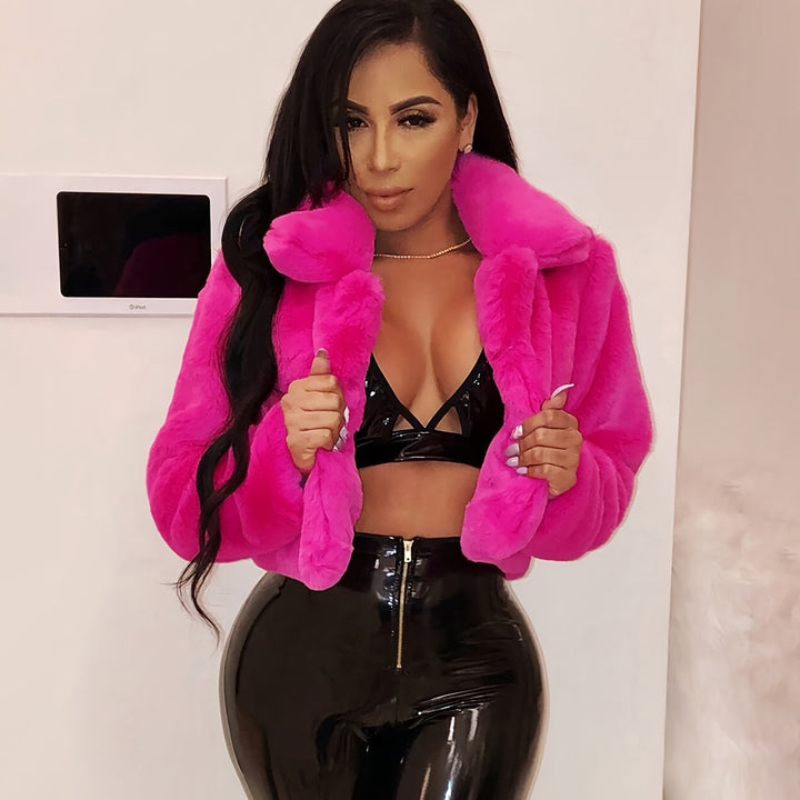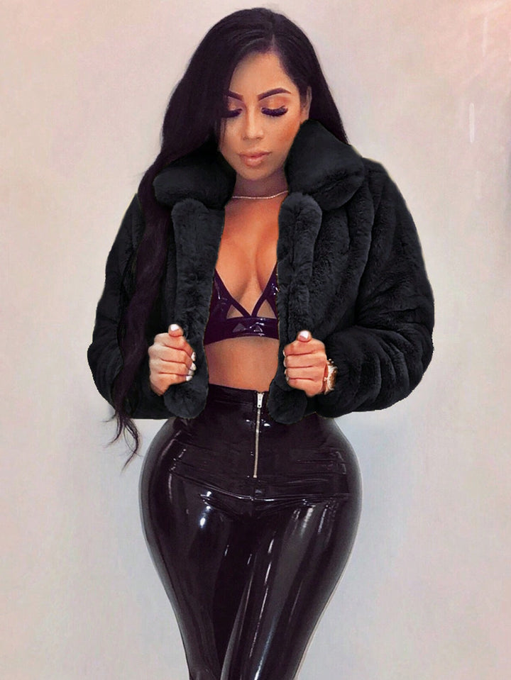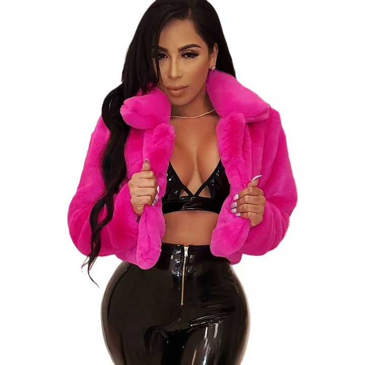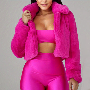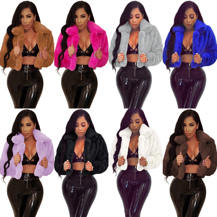 S391021 European and American autumn and winter loose artificial fur cardigan short jacket fluffy jacket