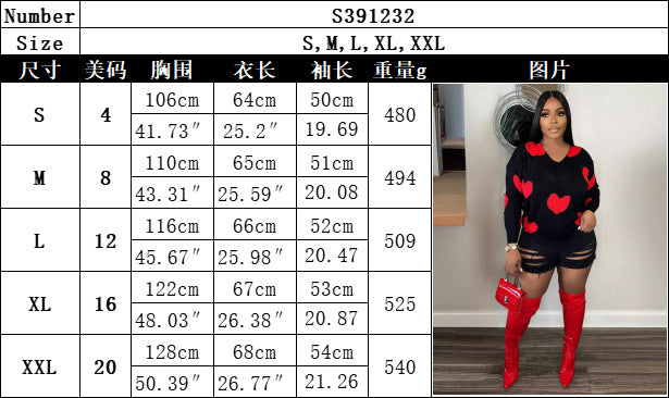 S391232 Cross-border love pullover sweater women's autumn and winter knitted jacquard V-neck pullover long-sleeved knitted sweater top
