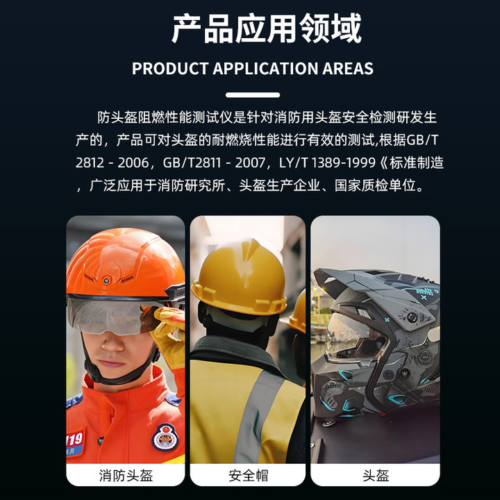 Safety helmet flame retardant performance testing device Fire helmet combustion resistance te...