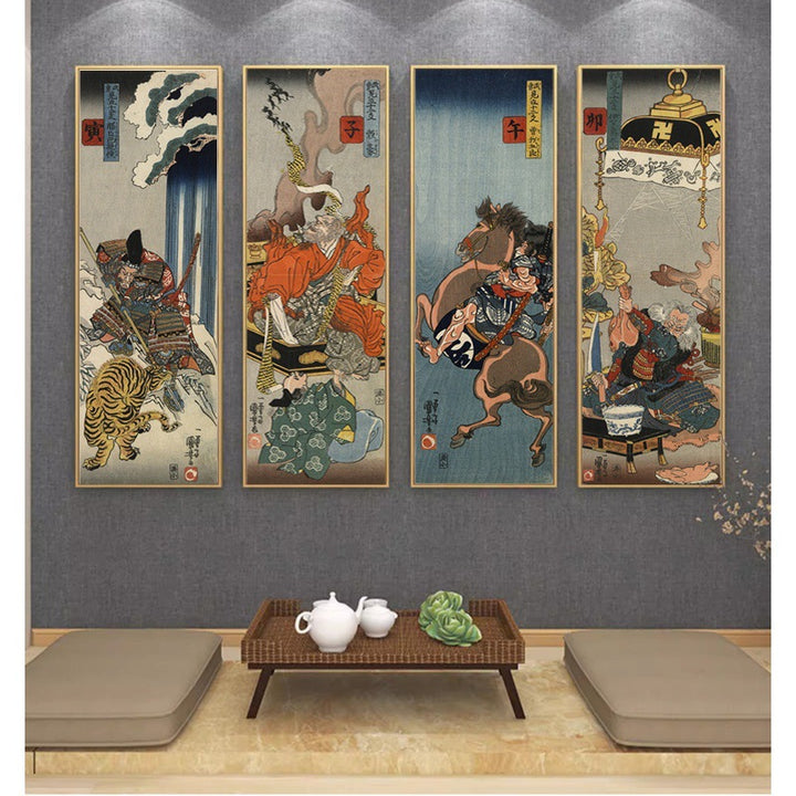 Samurai tattoo shop painting Japanese ukiyo-e painting niche new century photo background wall painting role play tabletop game decorative painting