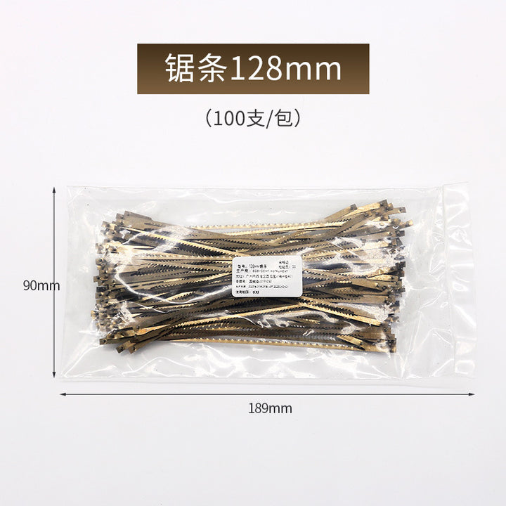 Aluminum handle saw bow 128mm, Aluminum handle saw bow 98mm, Aluminum handle saw bow 72mm, Saw blade length 127mm (100 pcs/bag), Saw blade short 95mm (100 pcs/bag), Saw blade 70mm (100 pcs/bag), Saw blade 128mm (100 pcs/bag), Red handle saw bow 98MM JG-101, Red handle saw bow 128MM JG-101 |