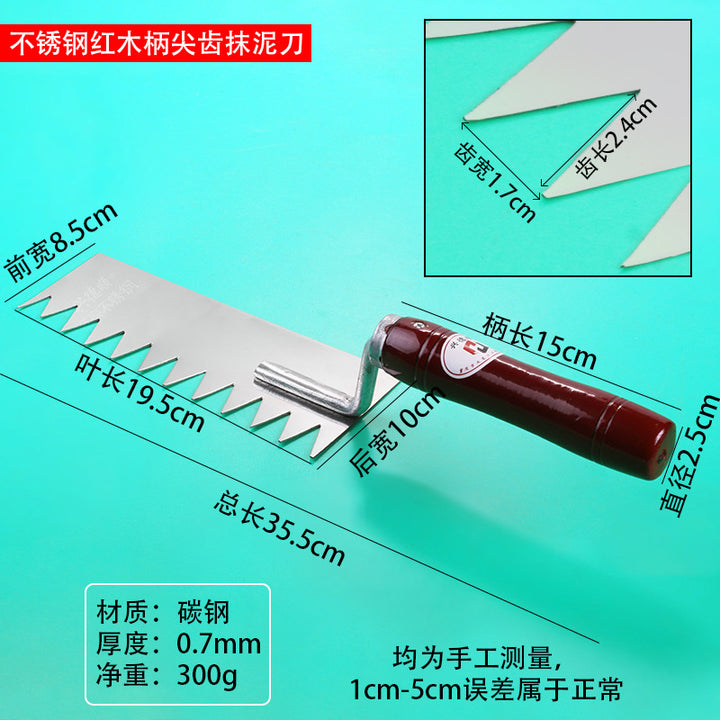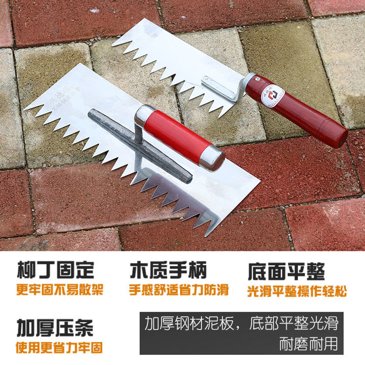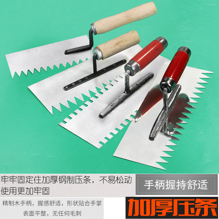 Sawtooth trowel clay slab tile trowel bricklayer tool Daquan stainless steel floor tile toothed trowel tiling knife